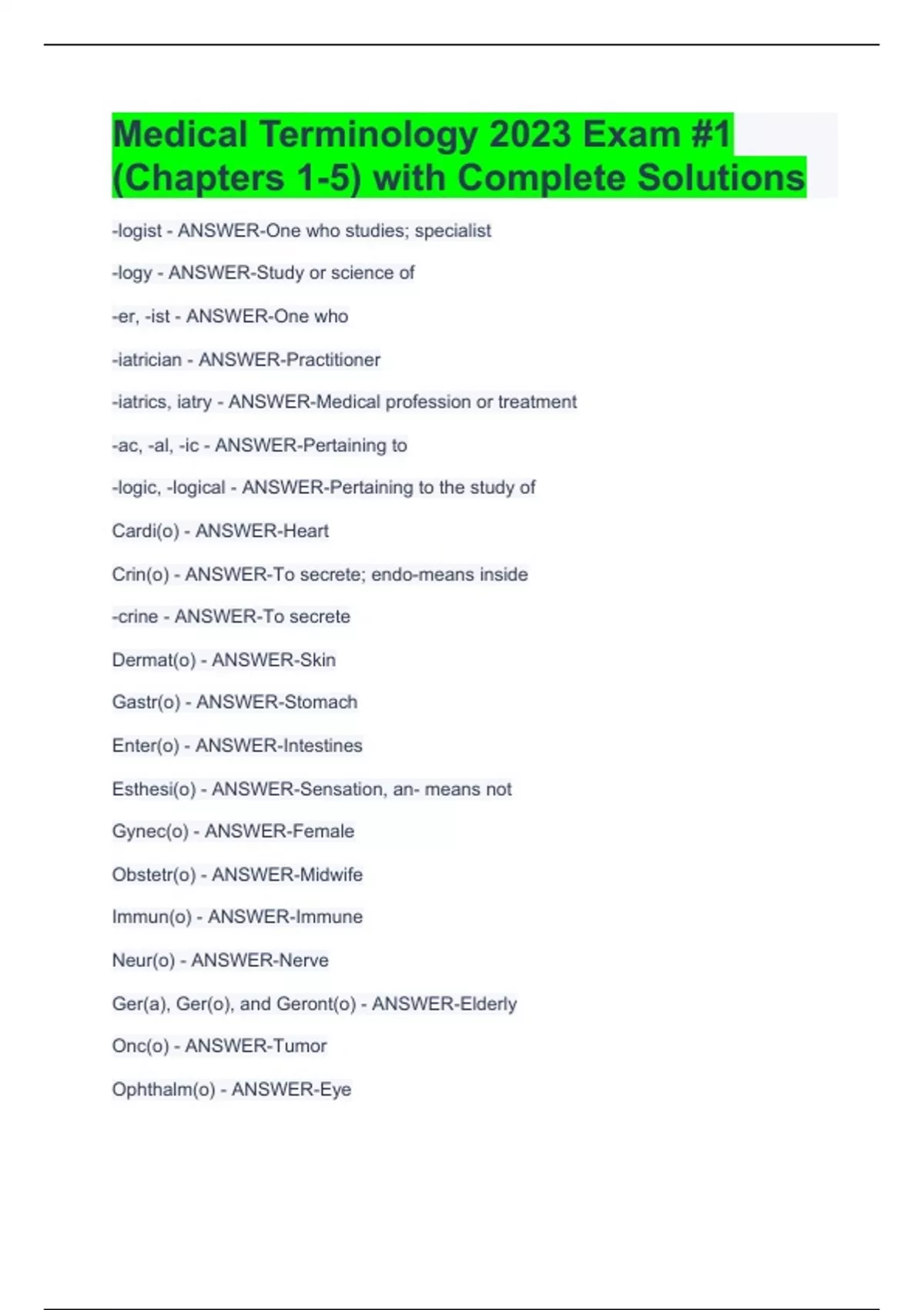 Medical Terminology 2023 Exam #1 (Chapters 1-5) with Complete Solutions