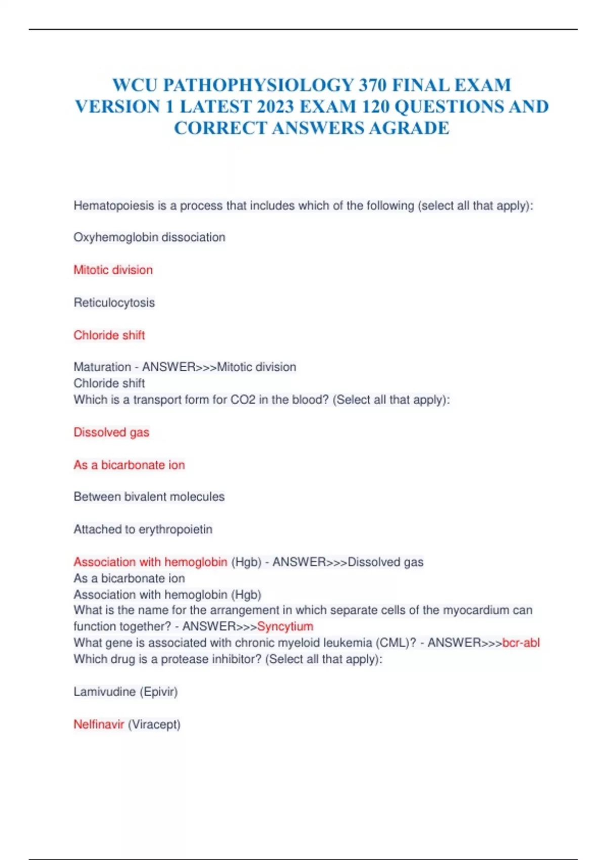 WCU PATHOPHYSIOLOGY 370 FINAL EXAM VERSION 1 LATEST 2023 EXAM 120 QUESTIONS AND ANSWERS