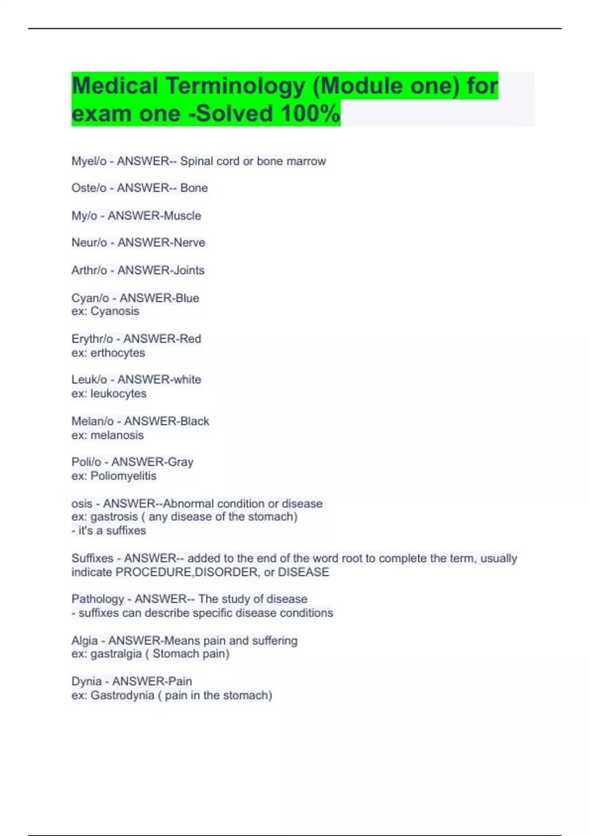 Medical Terminology (Module one) for exam one -Solved 100%