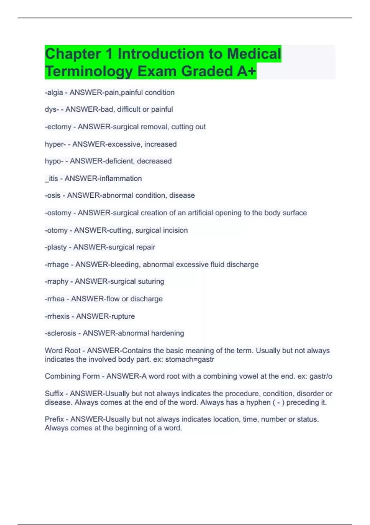 Chapter 1 Introduction to Medical Terminology Exam Graded A+