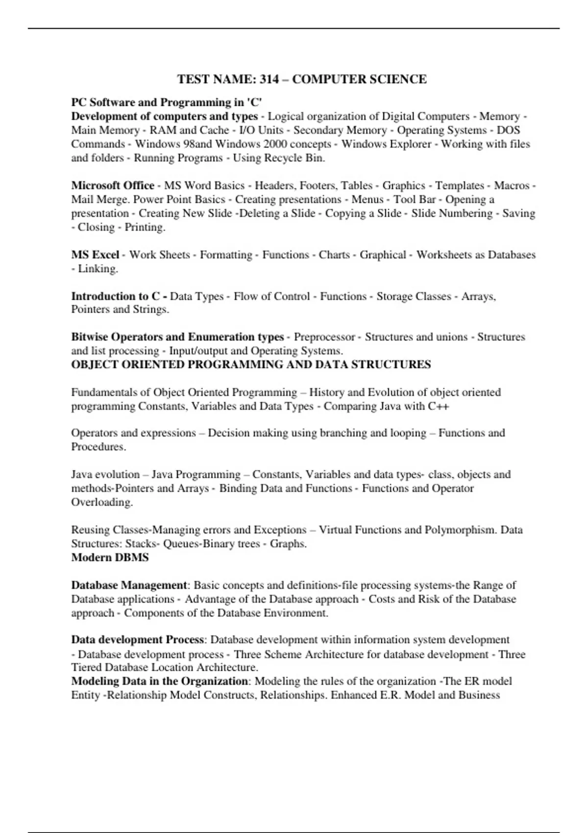 TEST NAME: 314 – COMPUTER SCIENCE