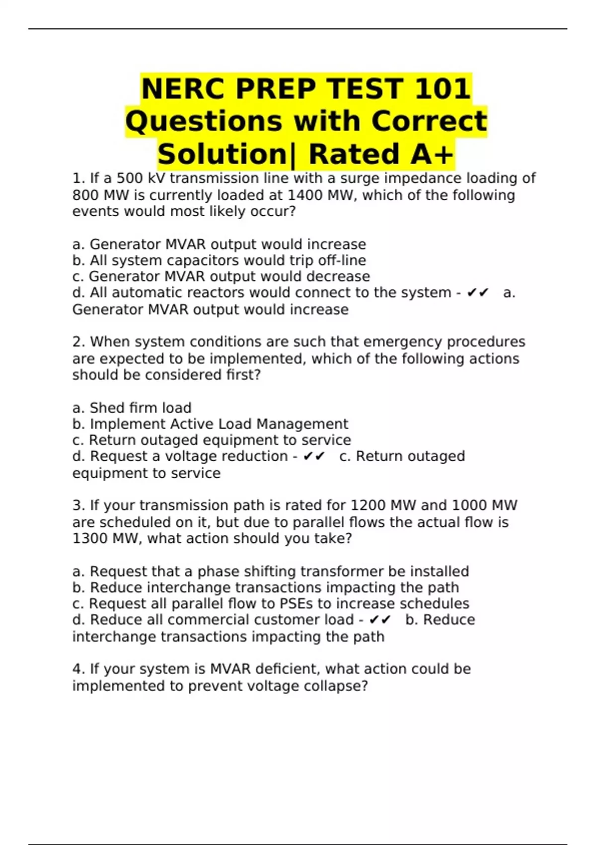 NERC PREP TEST 101 Questions with Correct Solution| Rated A+