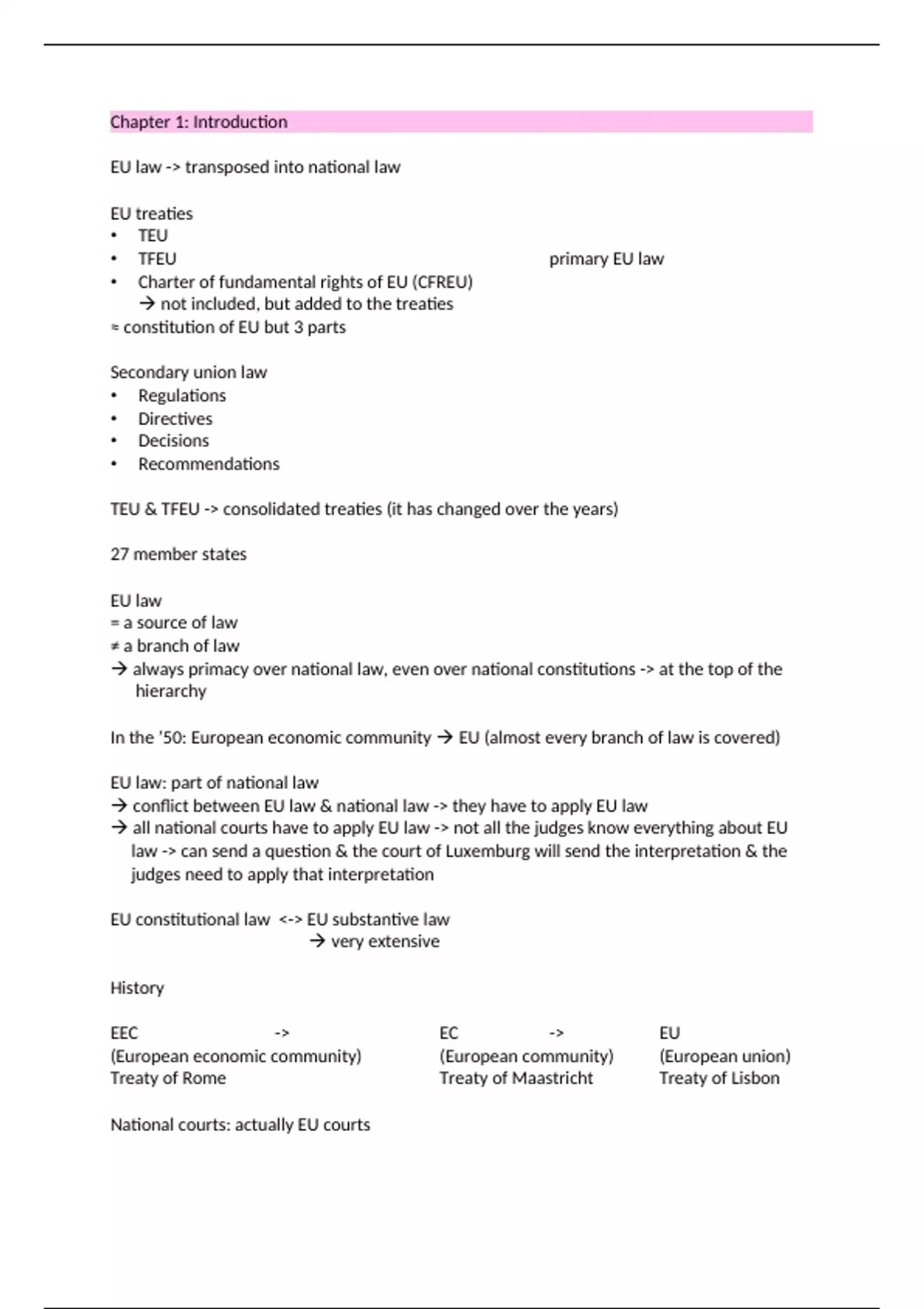 • TFEU primary EU law