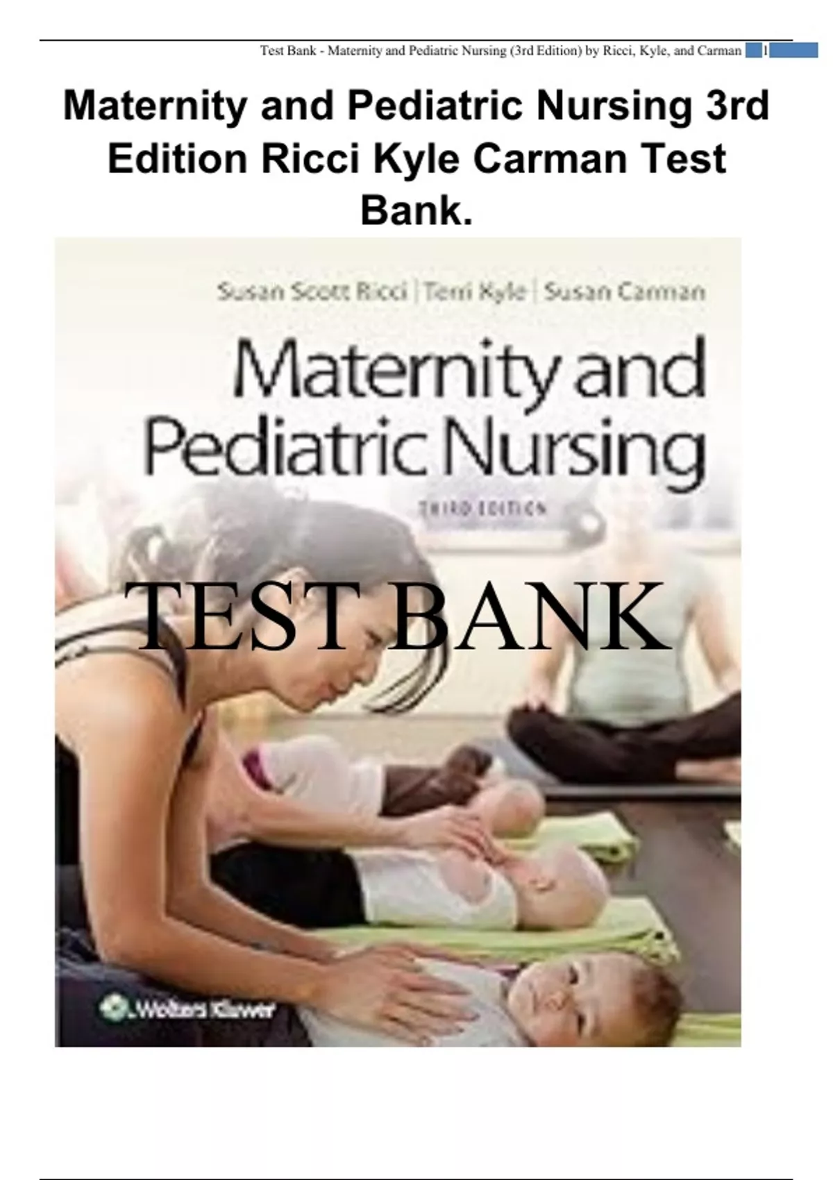 Maternity and Pediatric Nursing 3rd Edition Ricci Kyle Carman Test Bank.