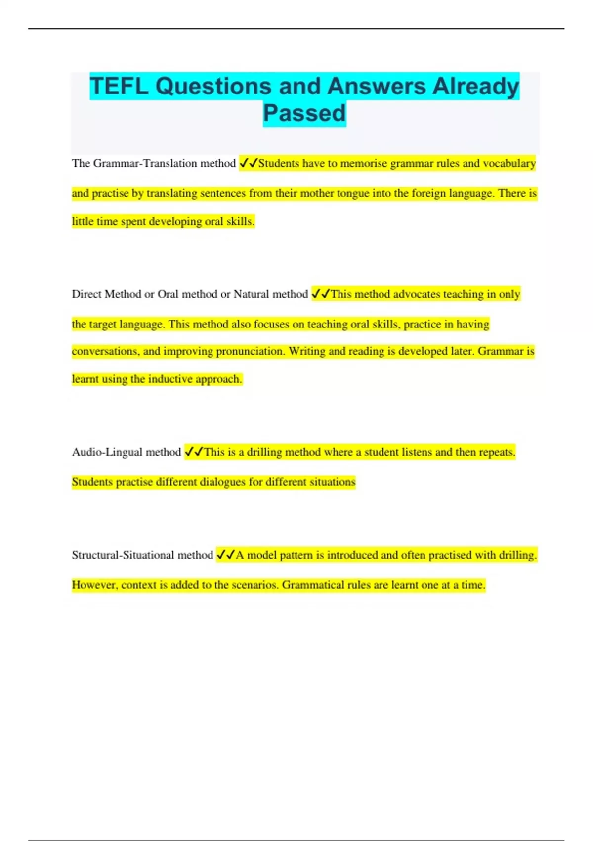 TEFL Questions and Answers Already Passed
