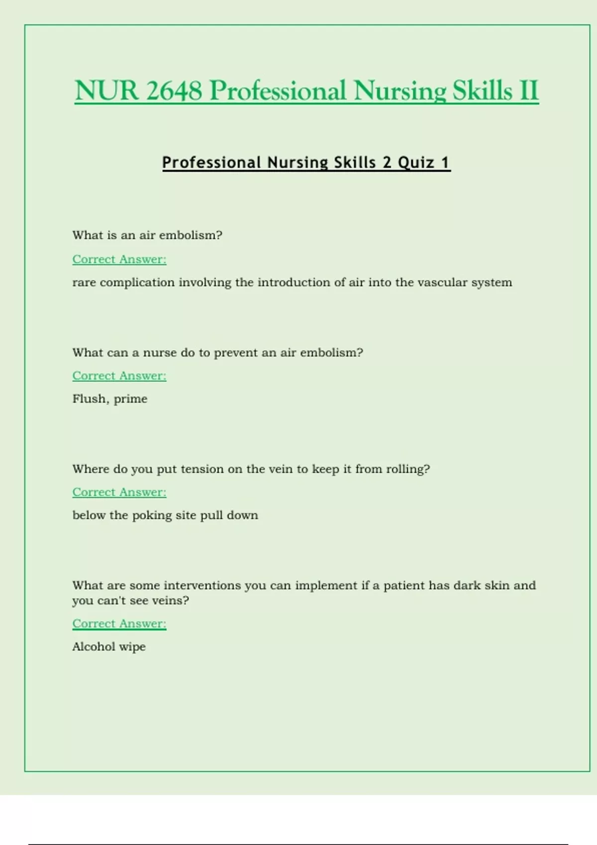 Quiz 1 - NUR2648 / NUR 2648 (Latest 2023 / 2024): Professional Nursing Skills II - Rasmussen