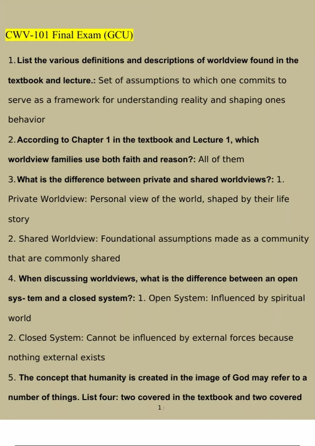 Grand Canyon University CWV-101 Final Exam (GCU) Latest 2023/2024[100% correct answers & explanations]