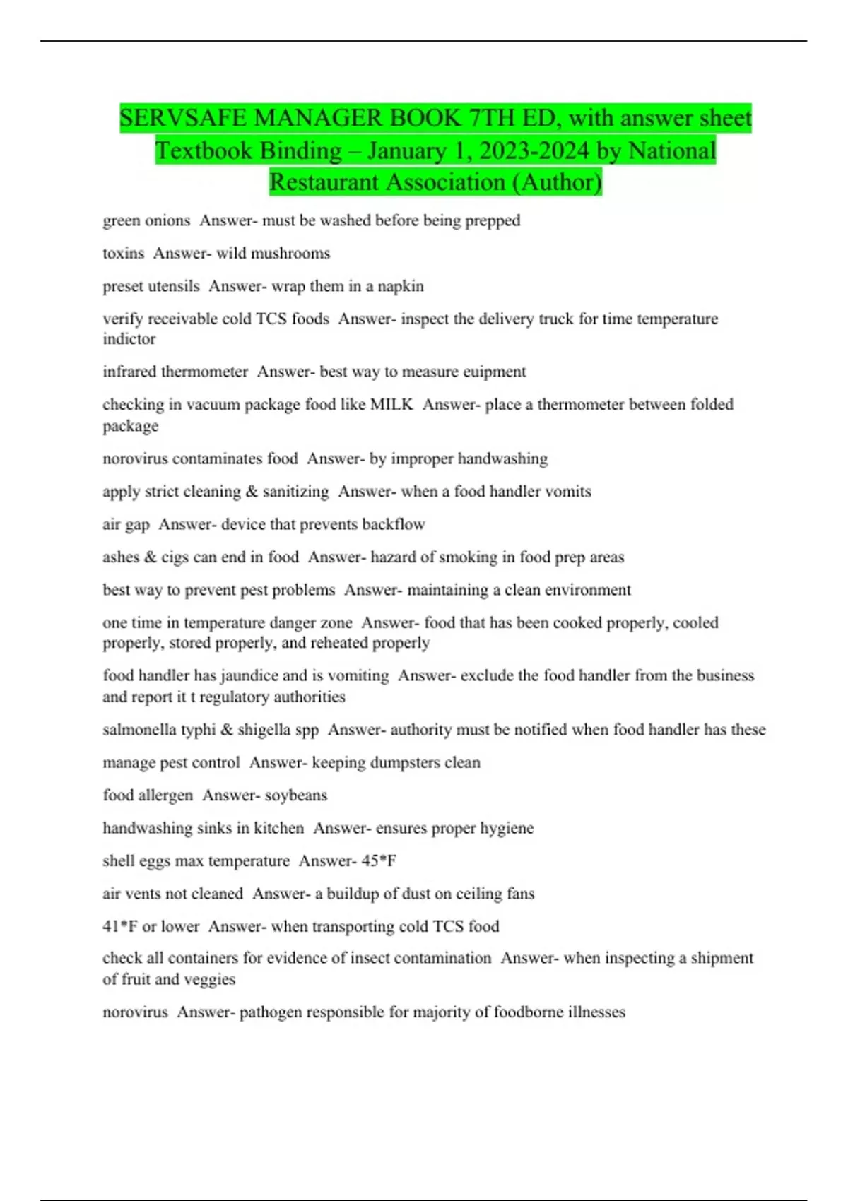 SERVSAFE MANAGER BOOK 7TH ED, with answer sheet Textbook Binding – January 1, by National Restaurant Association (Author)