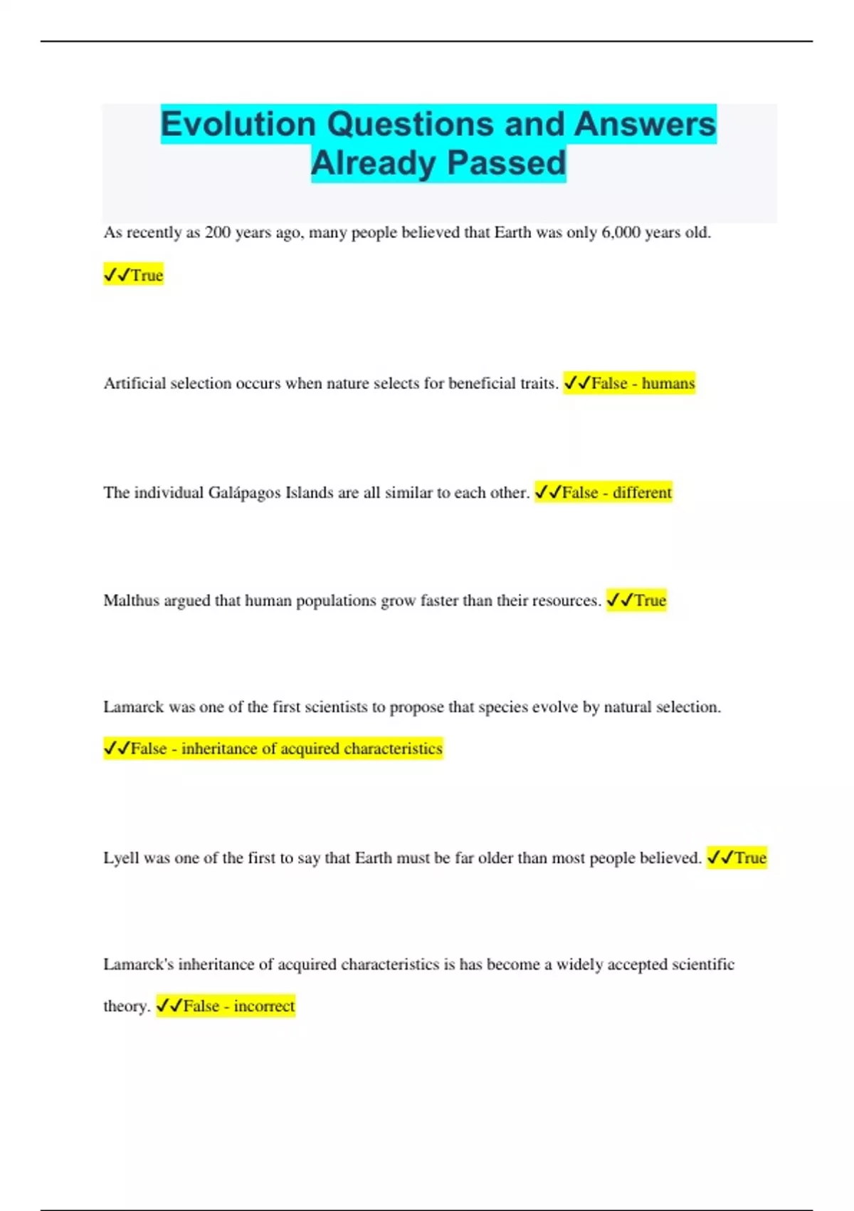 Evolution Questions and Answers Already Passed