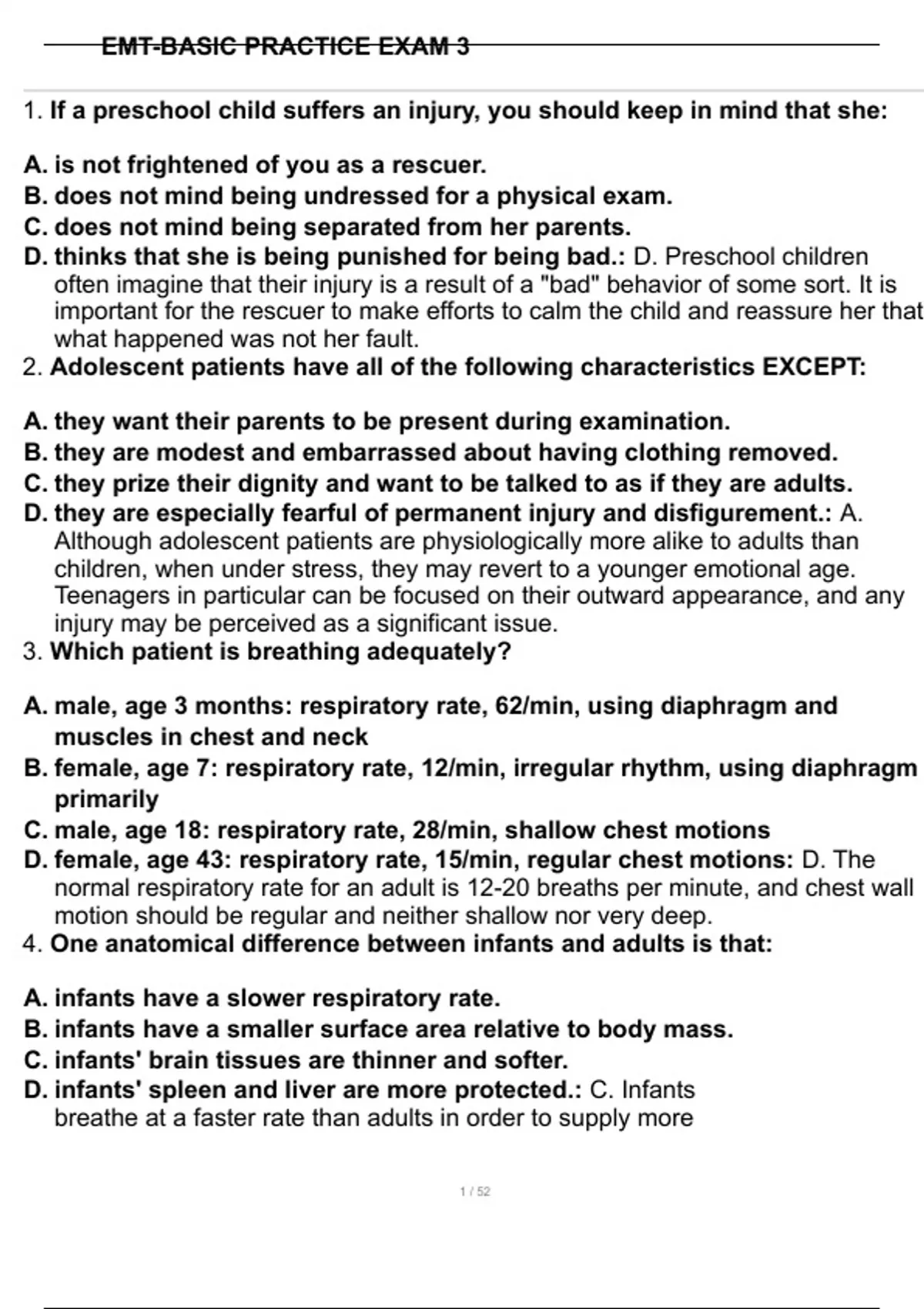 emt basic practice exam 3 correct questions answ