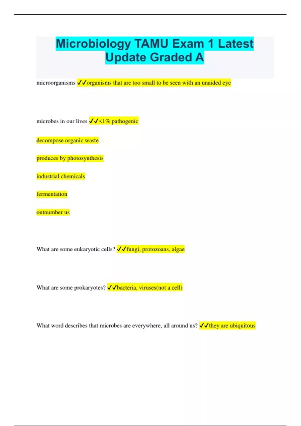 Microbiology TAMU Exam 1 Latest Update Graded A