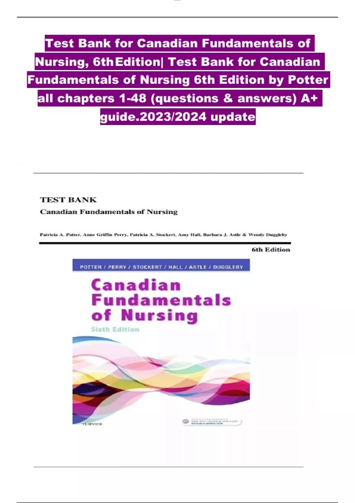Nursing, 6th Edition| Test Bank for Canadian