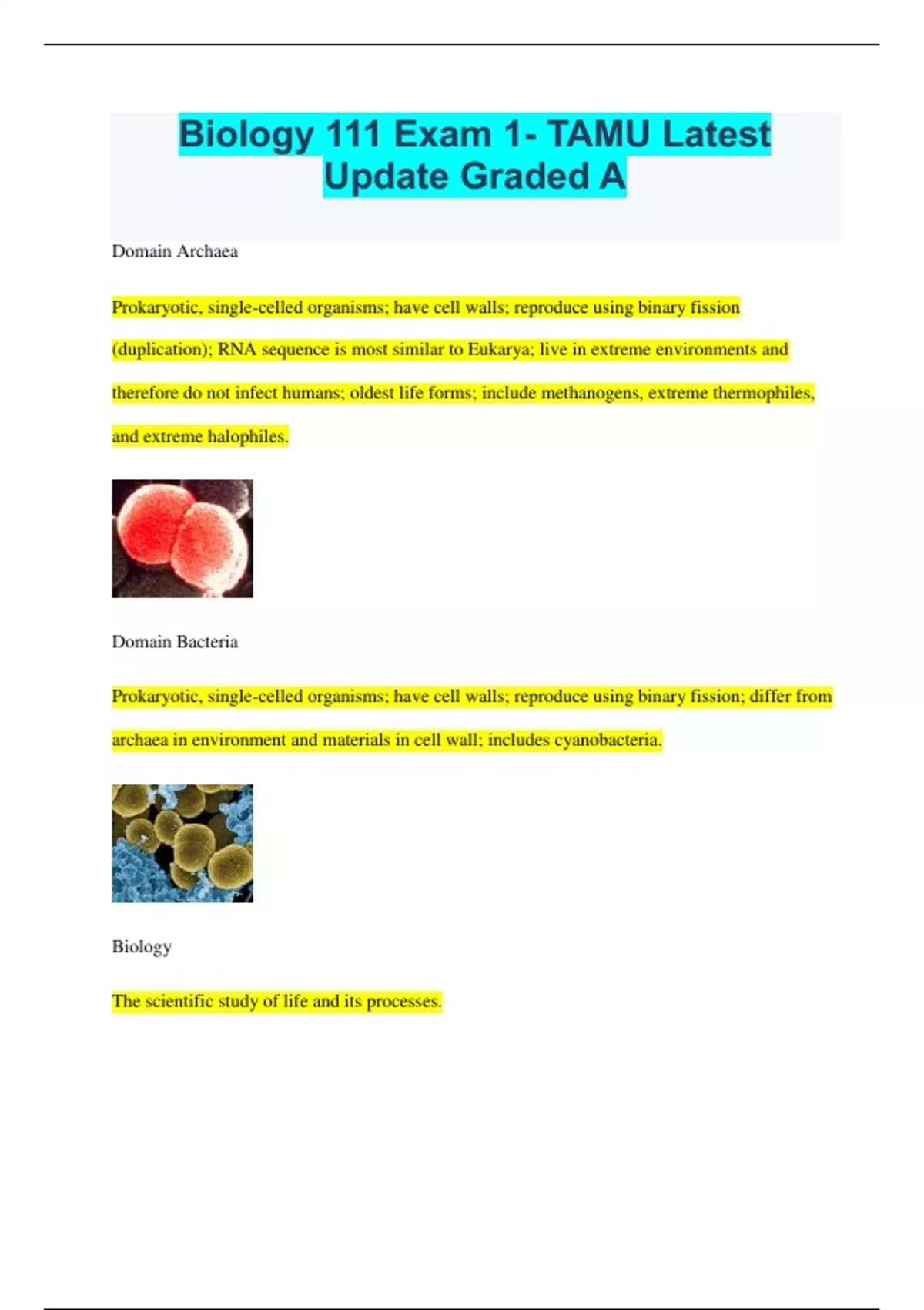 Biology 111 Exam 1- TAMU Latest Update Graded A