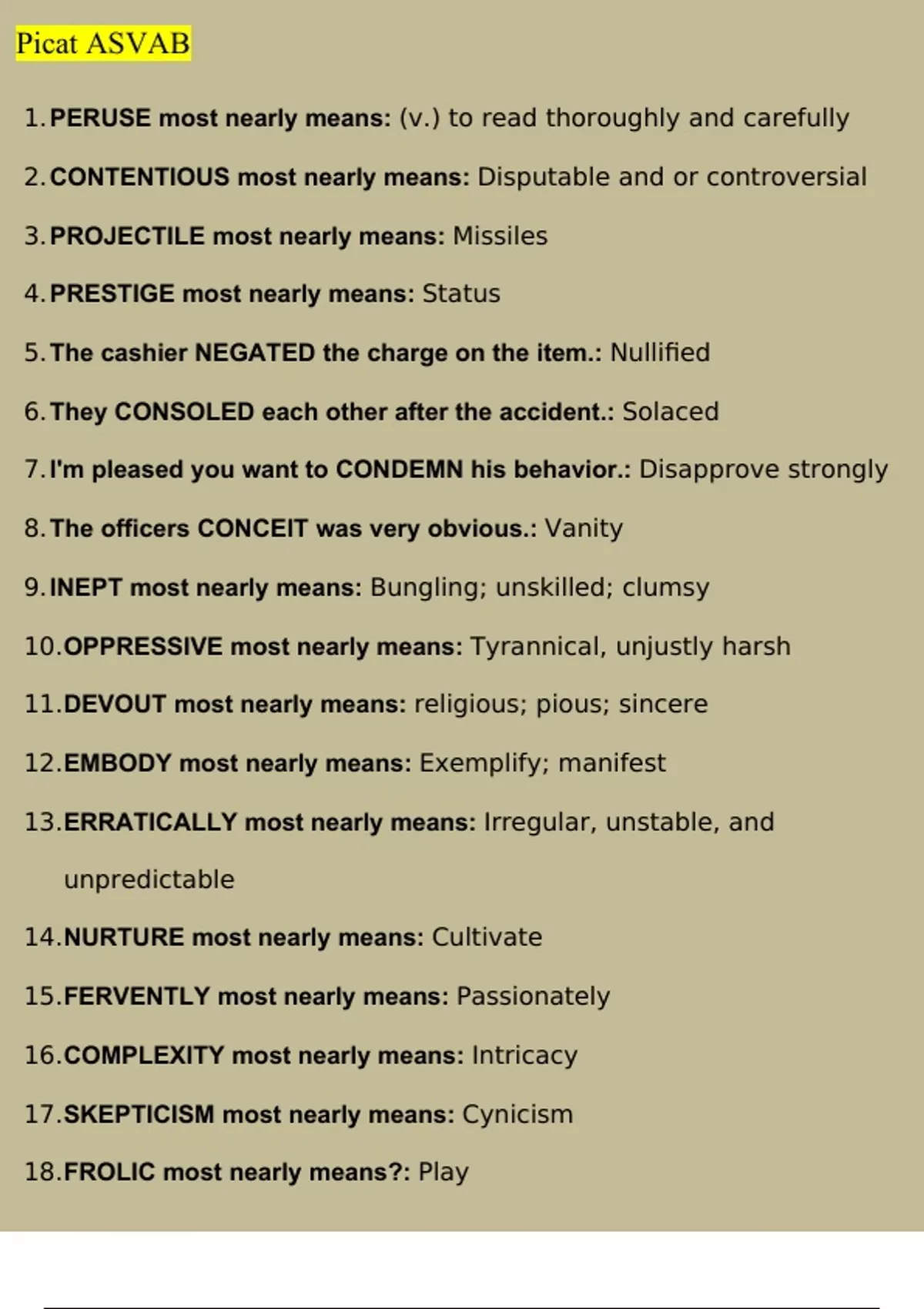 PICAT/ASVAB TEST Latest 2023/2024[100% correct answers & explanations]