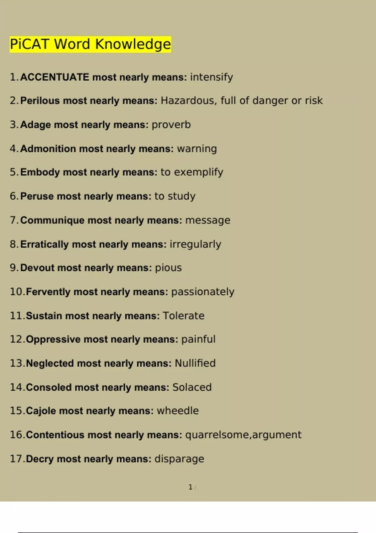 PICAT/ASVAB Word Knowledge Latest 2023/2024[100% correct answers & explanations]