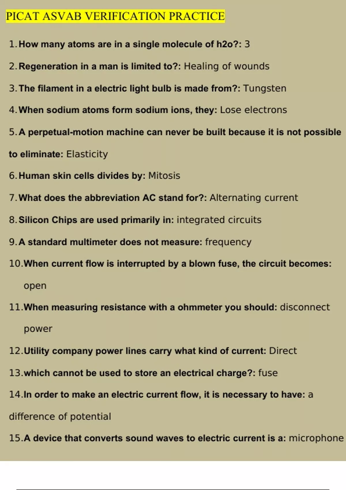 PICAT ASVAB VERIFICATION PRACTICE Latest 2023/2024[100% correct answers & explanations]