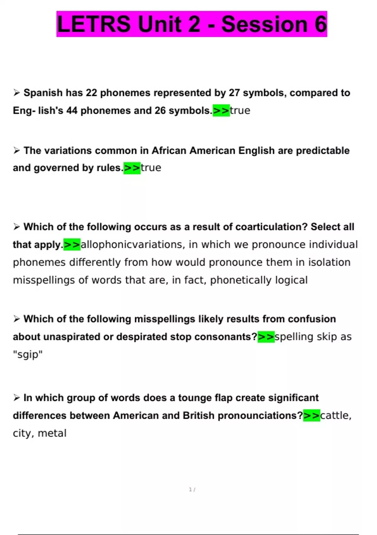 LETRS Unit 2 - Session 6 Questions with complete solutions