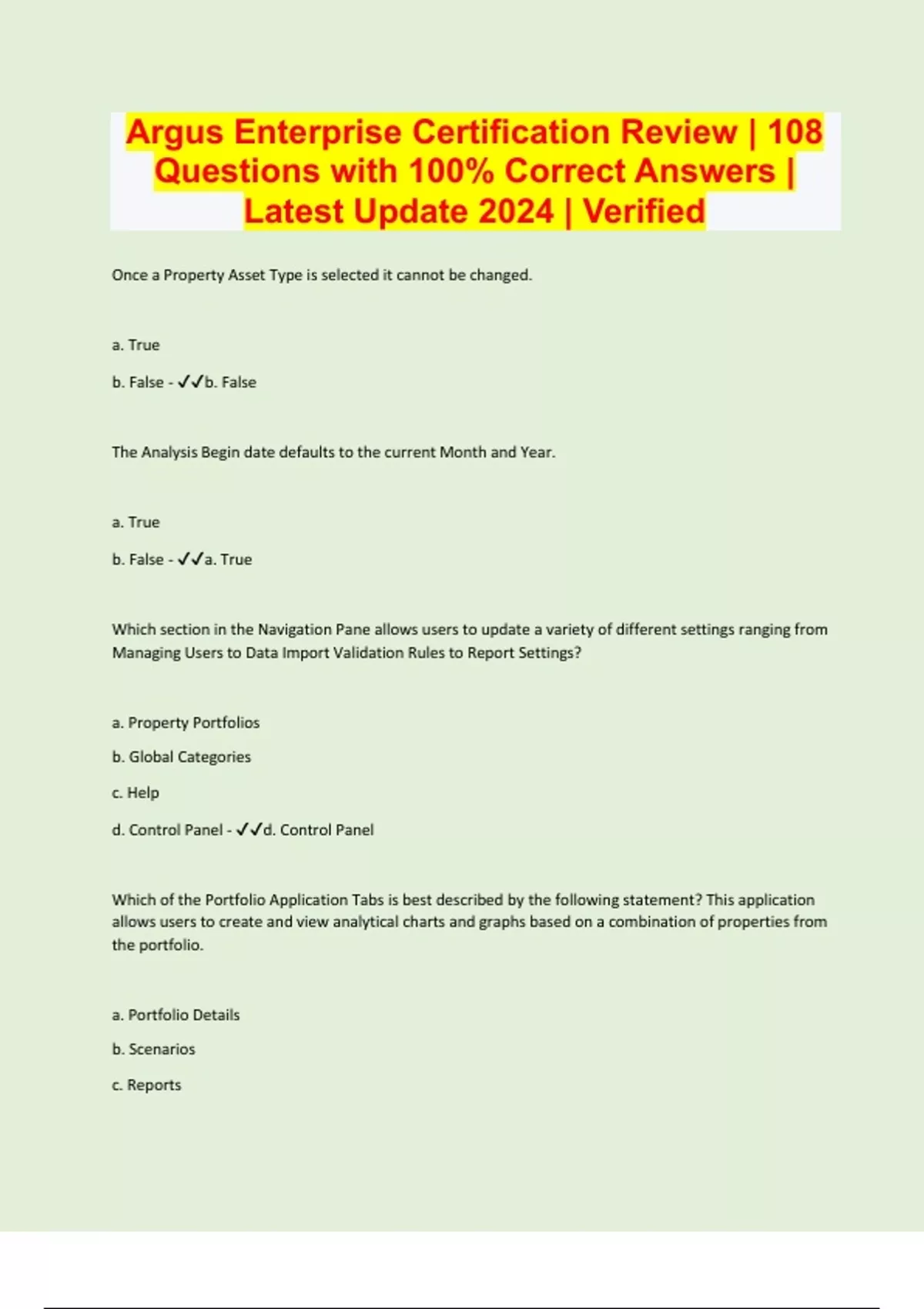 Argus Enterprise Certification Review | 108 Questions with 100% Correct Answers | Latest Update 2024 | Verified