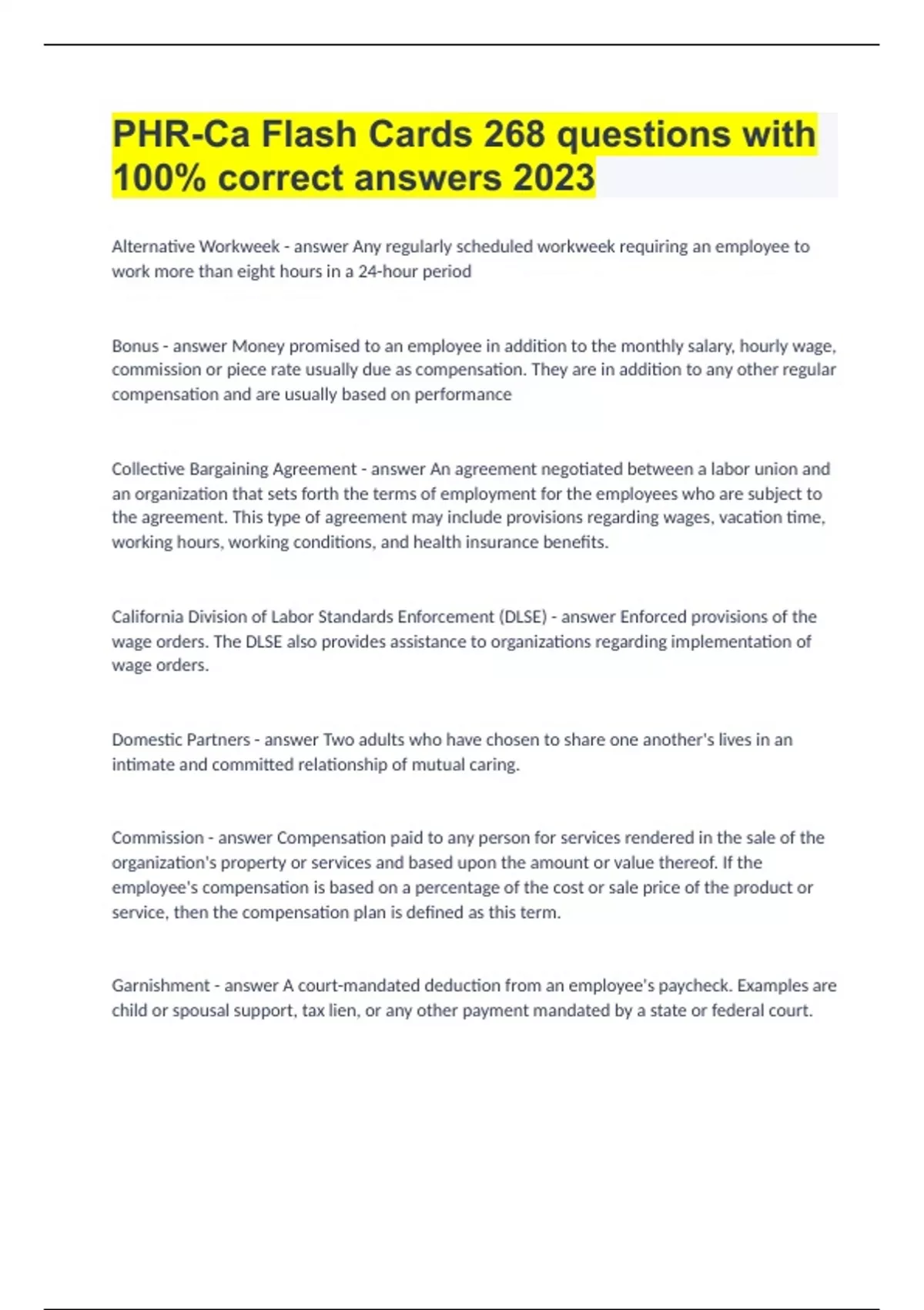 PHR-Ca Flash Cards |268 questions with 100% correct answers 2023.