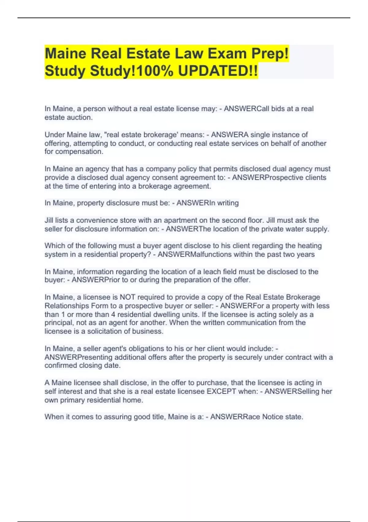 maine real estate law exam prep stuvia