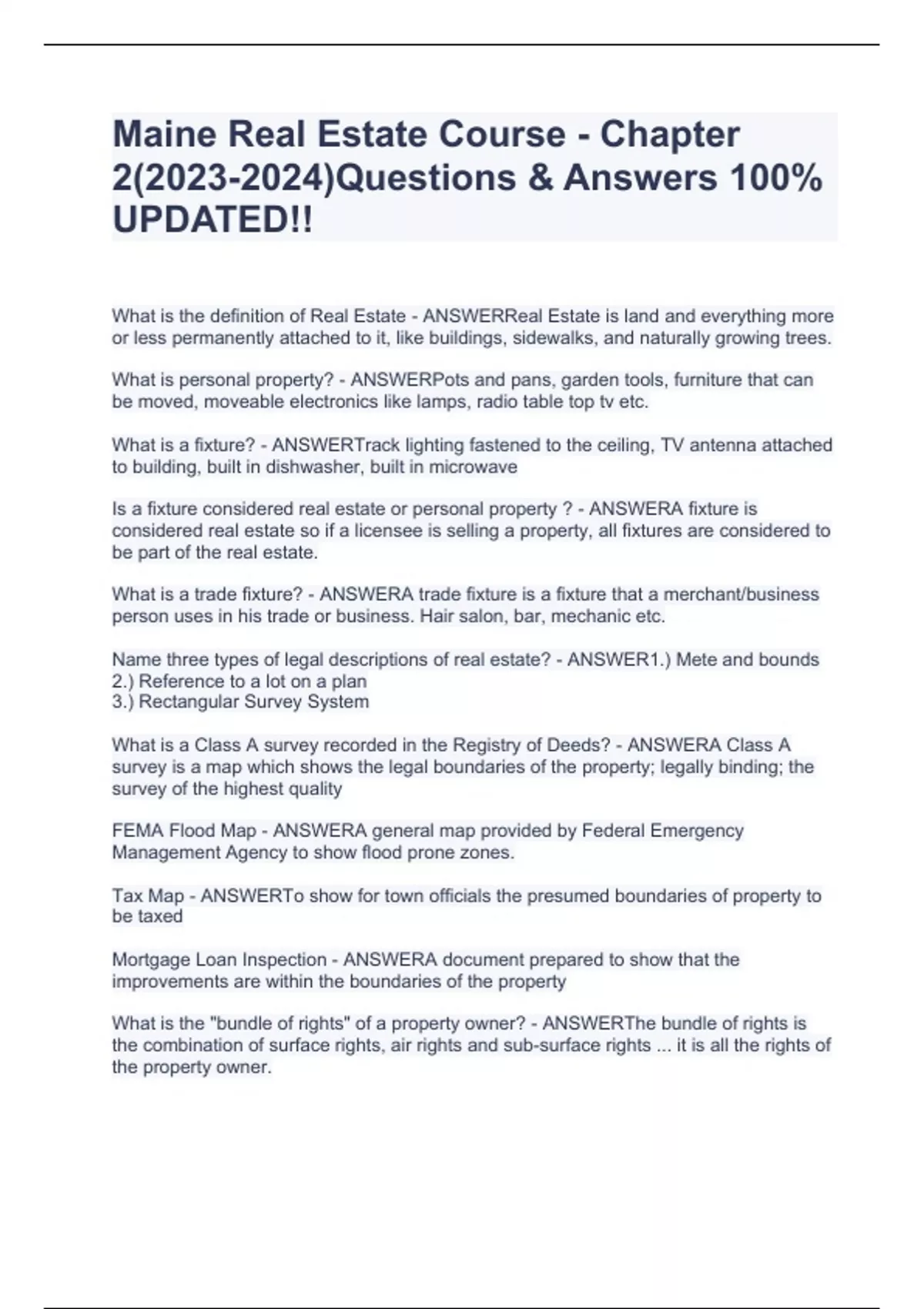 Maine Real Estate Course - Chapter 2()Questions & Answers 100% UPDATED!!