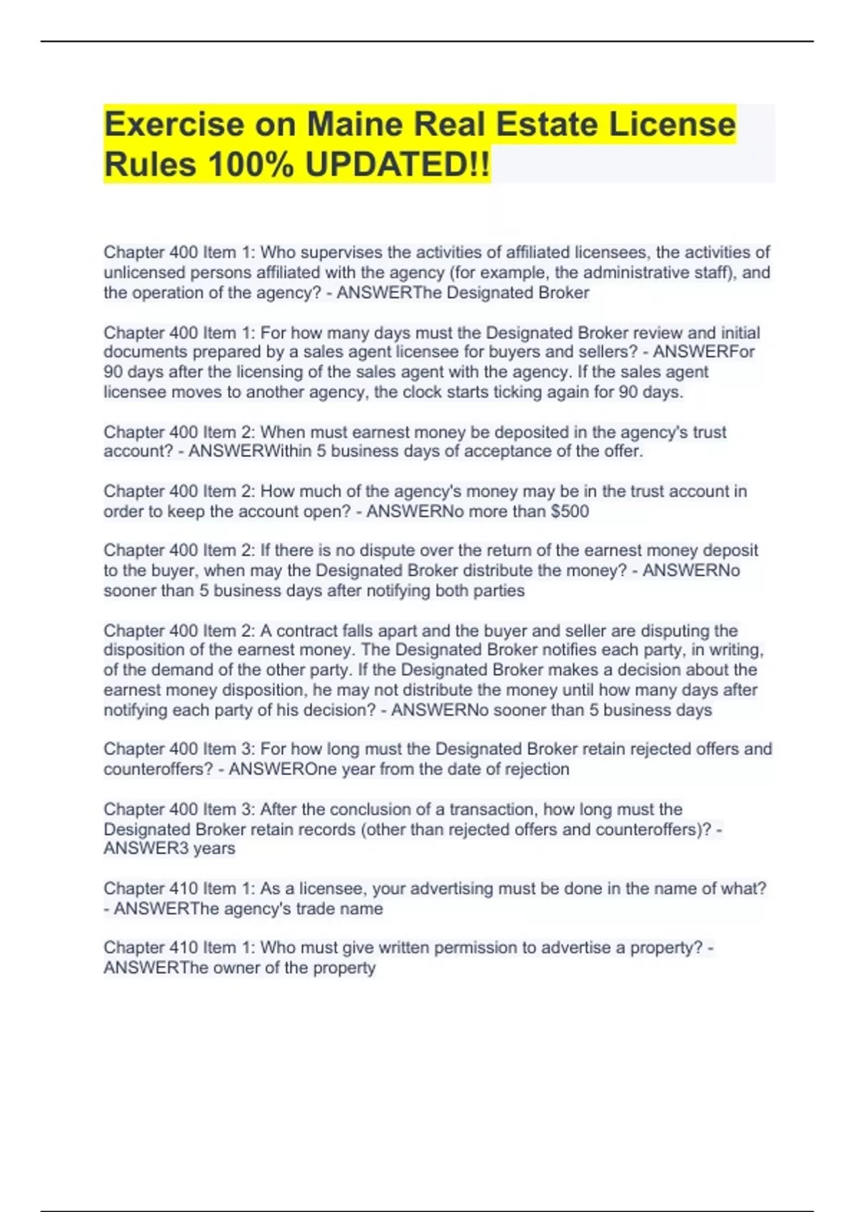 Exercise on Maine Real Estate License Rules 100% UPDATED!!