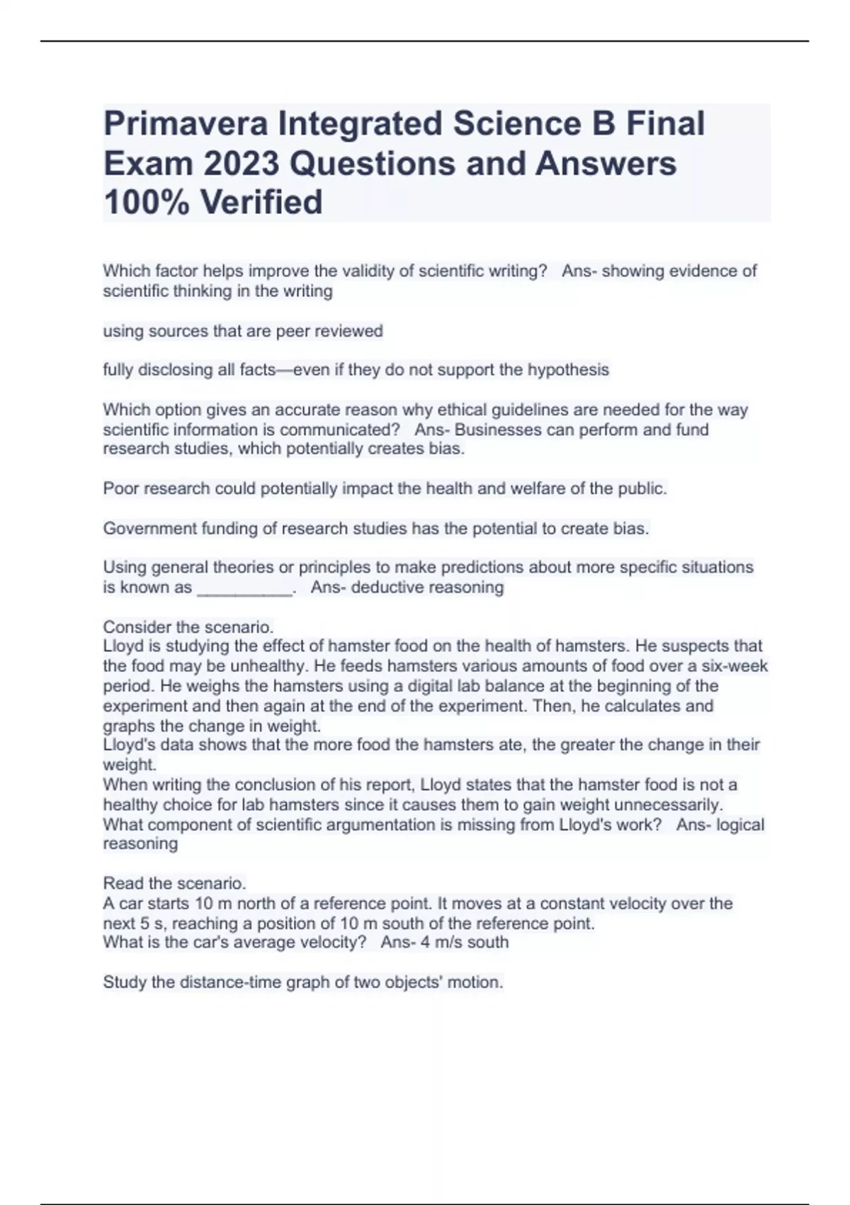 Primavera Integrated Science B Final Exam 2023 Questions and Answers 100% Verified