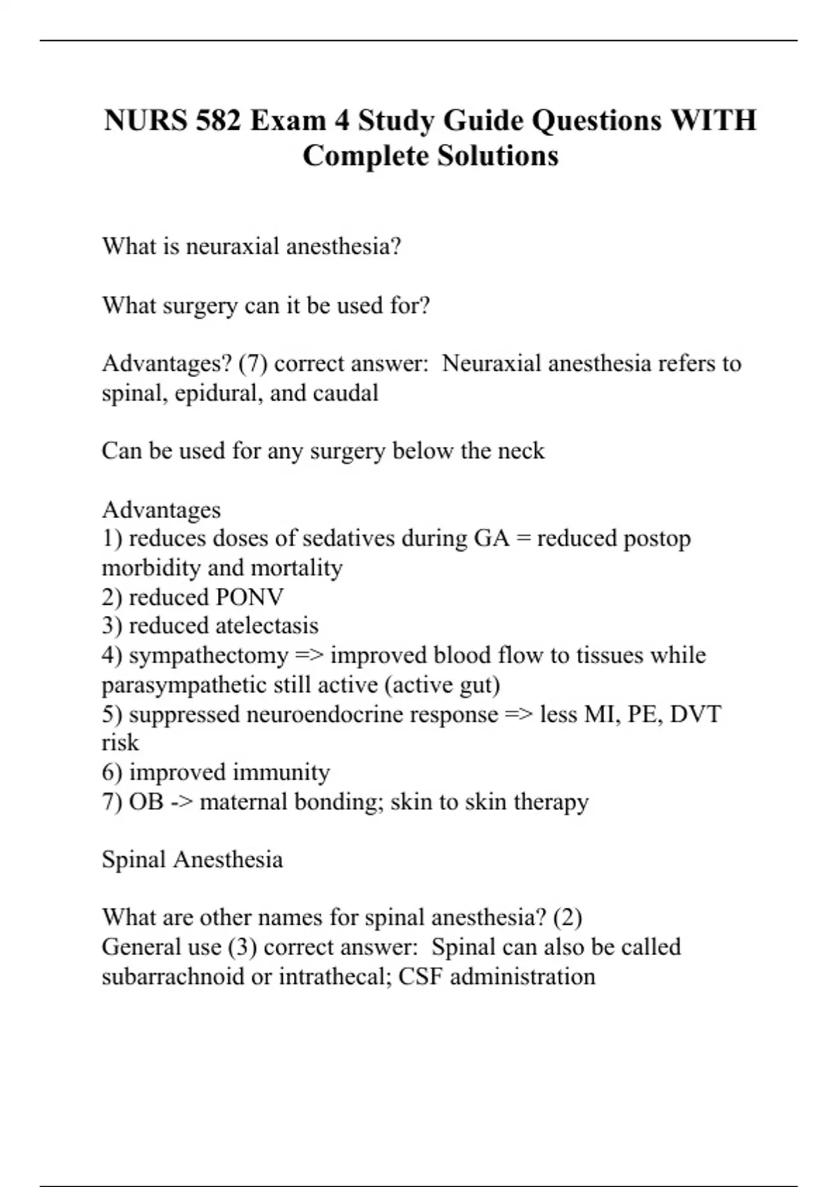 NURS 582 Exam 4 Study Guide Questions WITH Complete Solutions