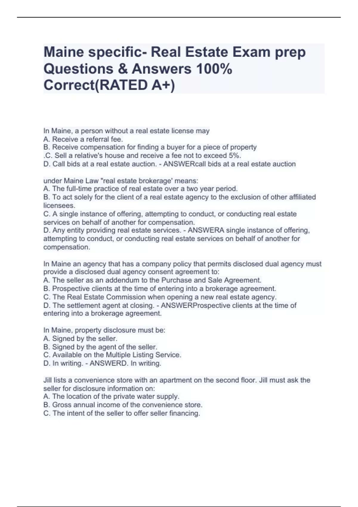 Maine specific- Real Estate Exam prep Questions & Answers 100% Correct(RATED A+)