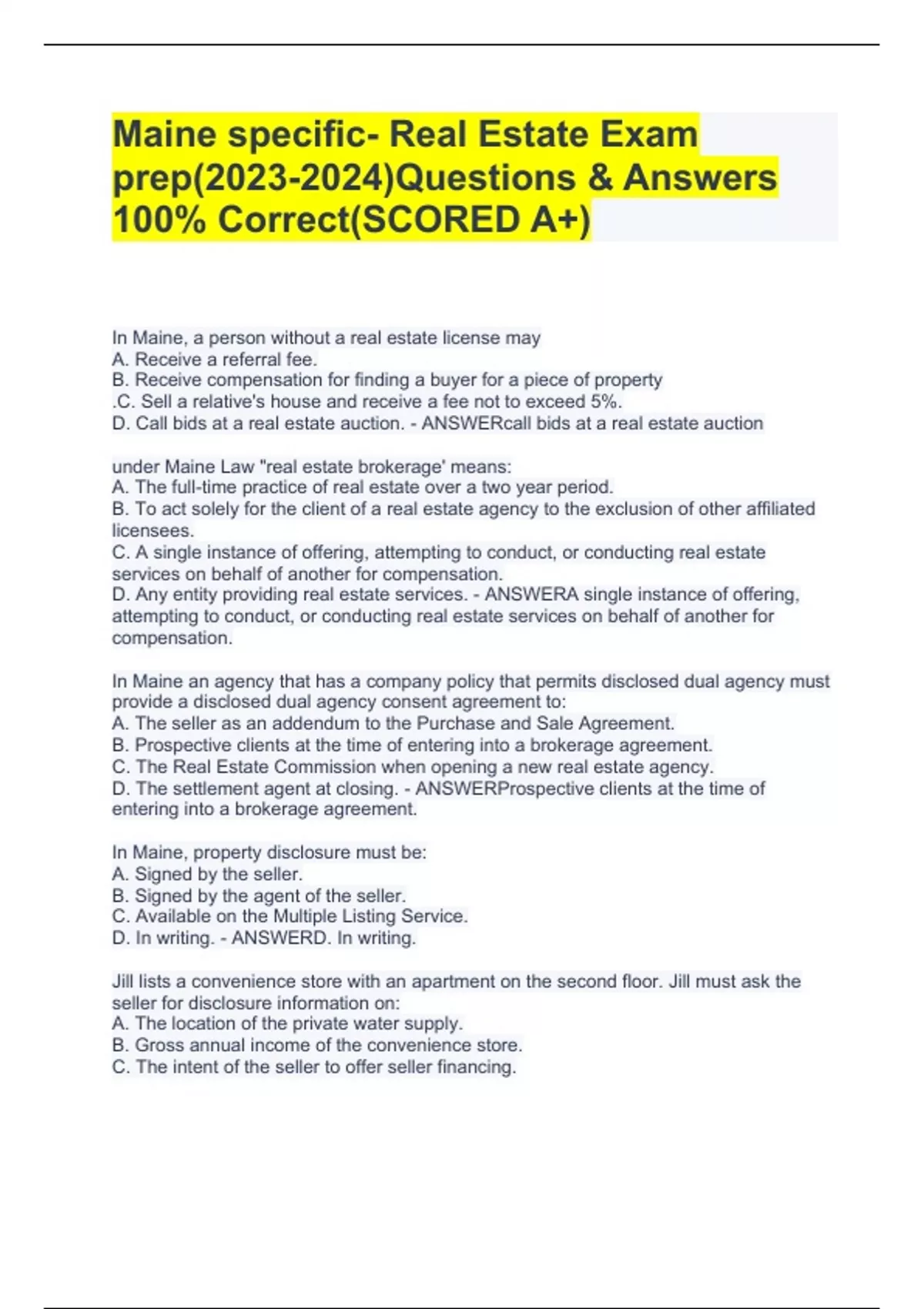 Maine specific- Real Estate Exam prep()Questions & Answers 100% Correct(SCORED A+)