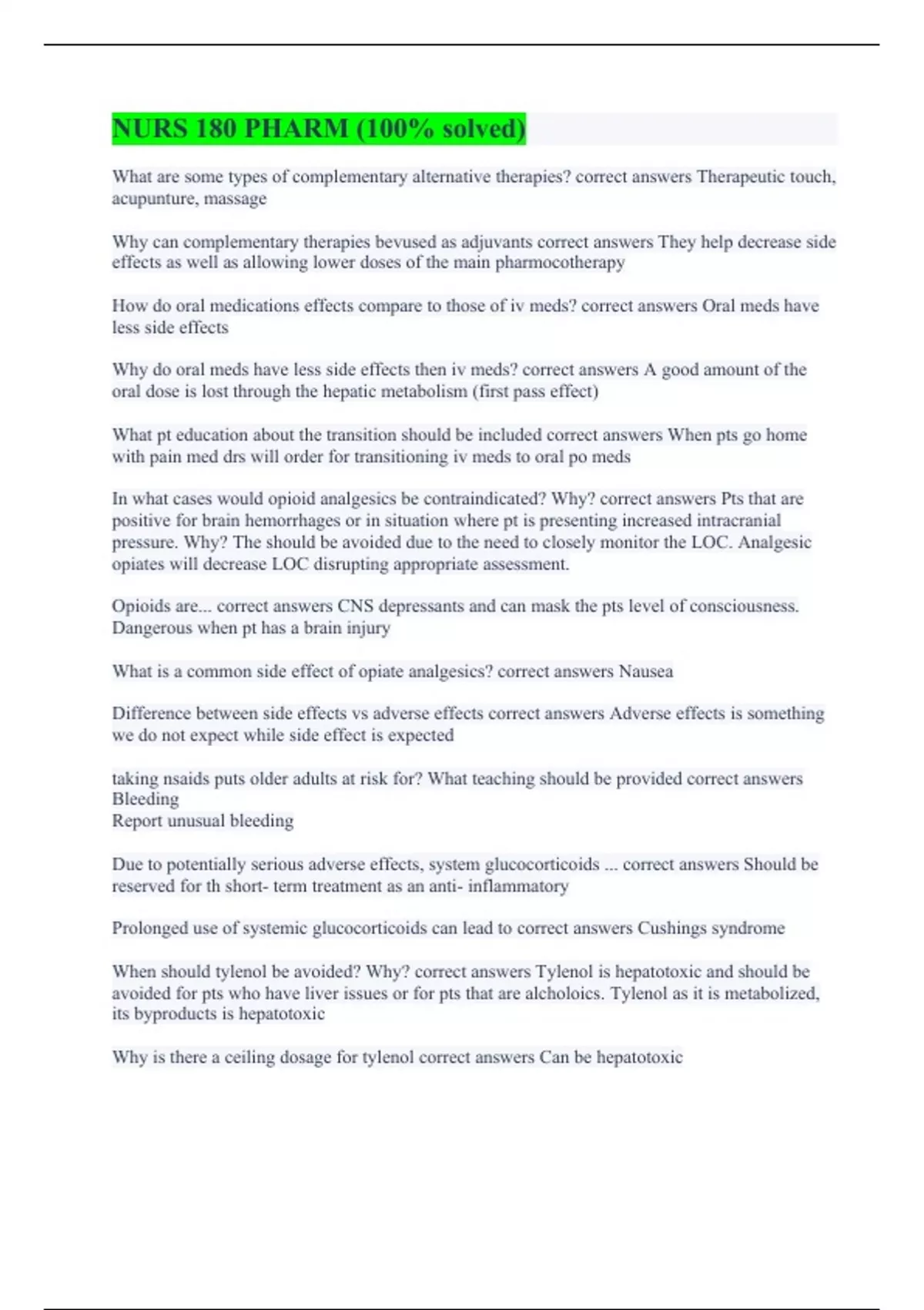 NURS 180 PHARM (100% solved)