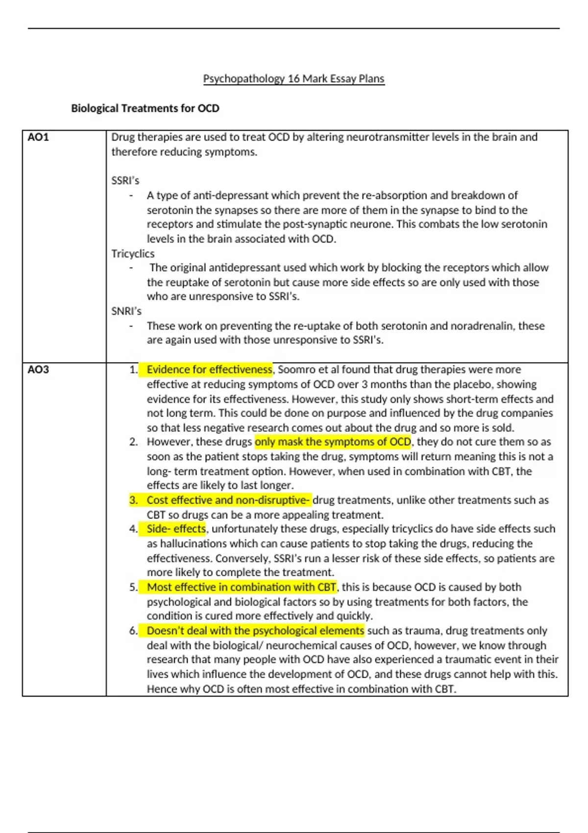 AO3 1. Evidence for effectiveness, Soomro et al found that drug therapies were more