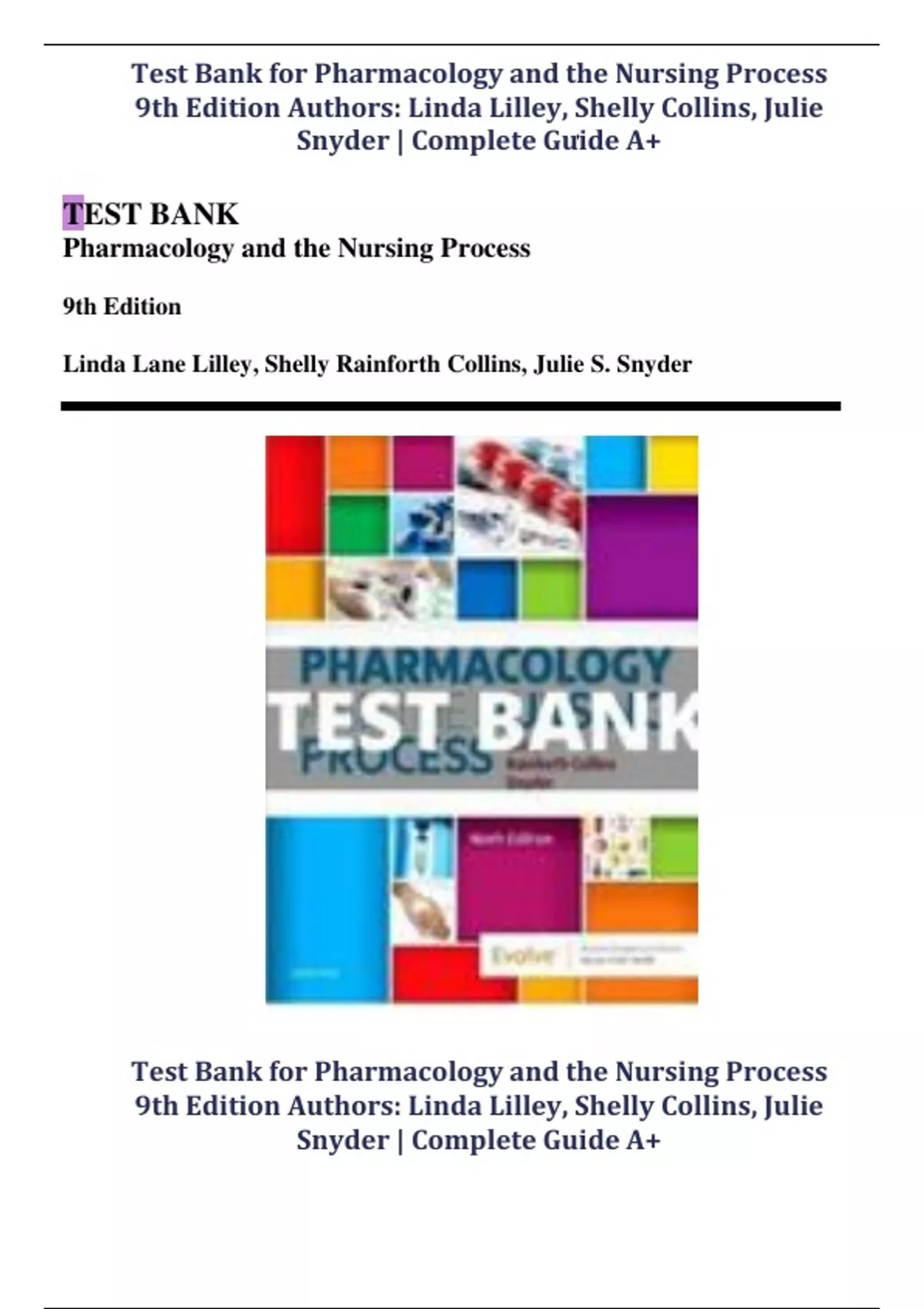 Pharmacology and the Nursing Process 9th Edition Test Bank This is NOT a book! This is a Test Bank (Study Questions) to help you study for your Tests. No delay, the download is quick and instantaneous right after you checkout! Test banks can give you the tools you need to help you study better. This download has no waiting period so that means that you will be able to download this test bank right away.