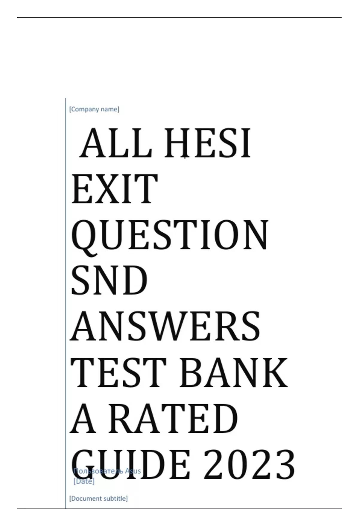 ALL HESI EXIT Questions and Answers Test Bank; A+ Rated Guide (2o24/2025)