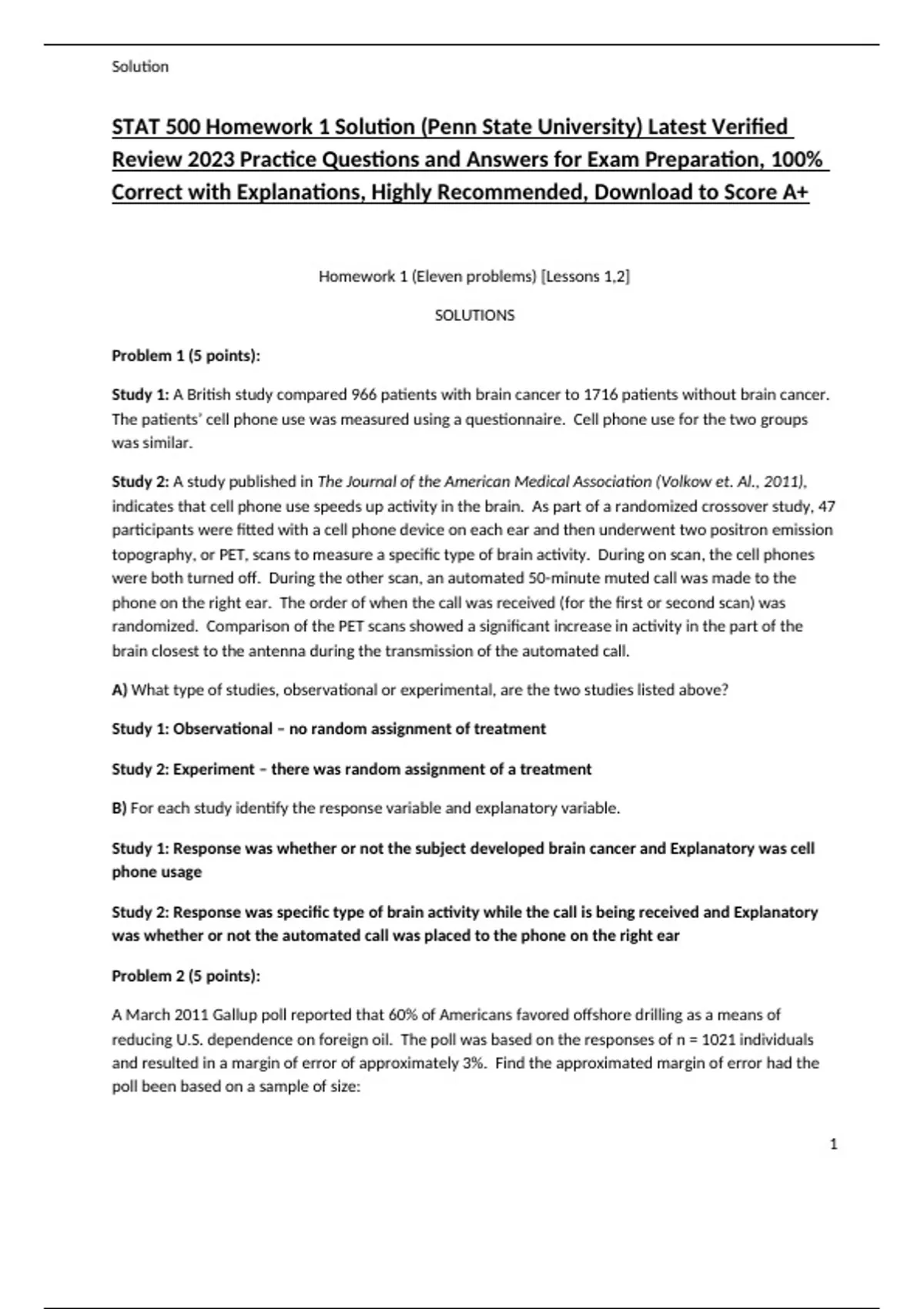 STAT 500 Homework 1 Solution (Penn State University) Latest Verified