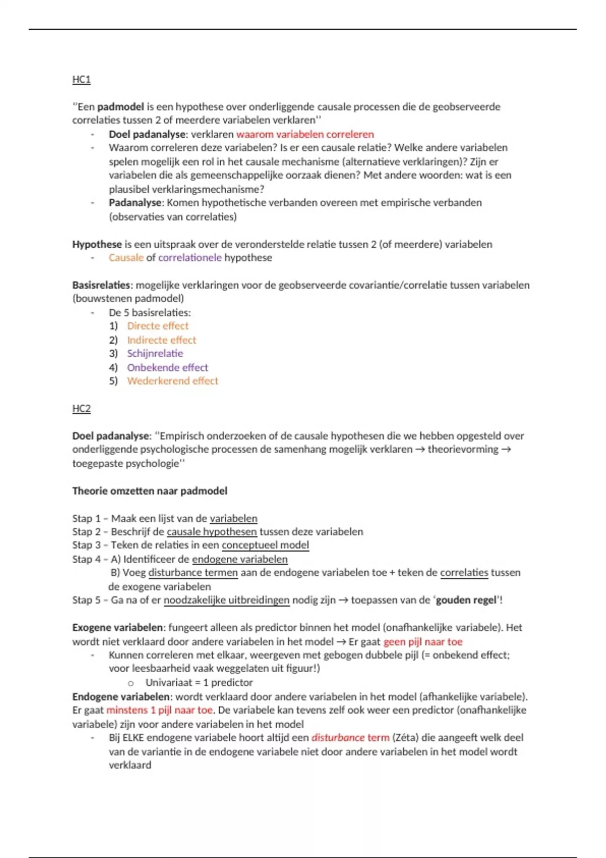 Doel padanalyse: ‘’Empirisch onderzoeken of de causale hypothesen die we hebben opgesteld over