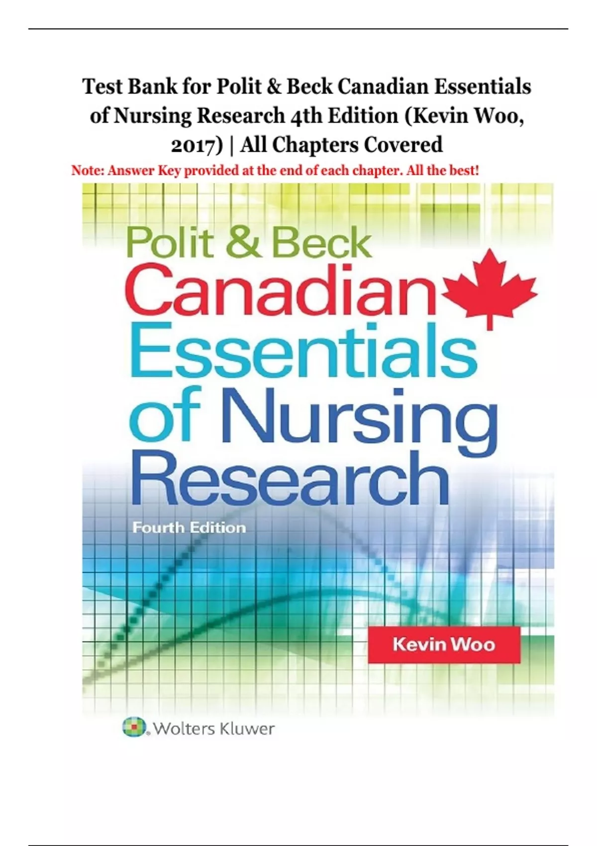 , Polit & Beck Canadian Essentials of Nursing Research 4th Edition Woo Test