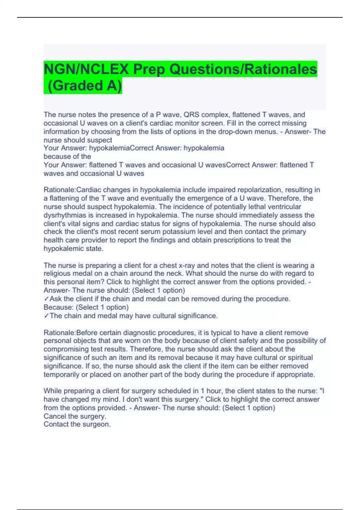 NGN NCLEX Prep Questions Rationales