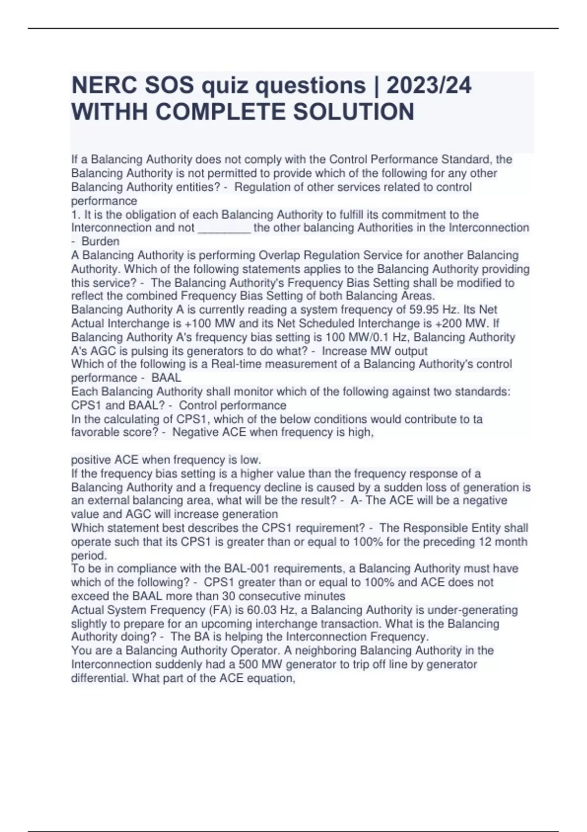 NERC SOS quiz questions | 2023/24 WITH COMPLETE SOLUTION