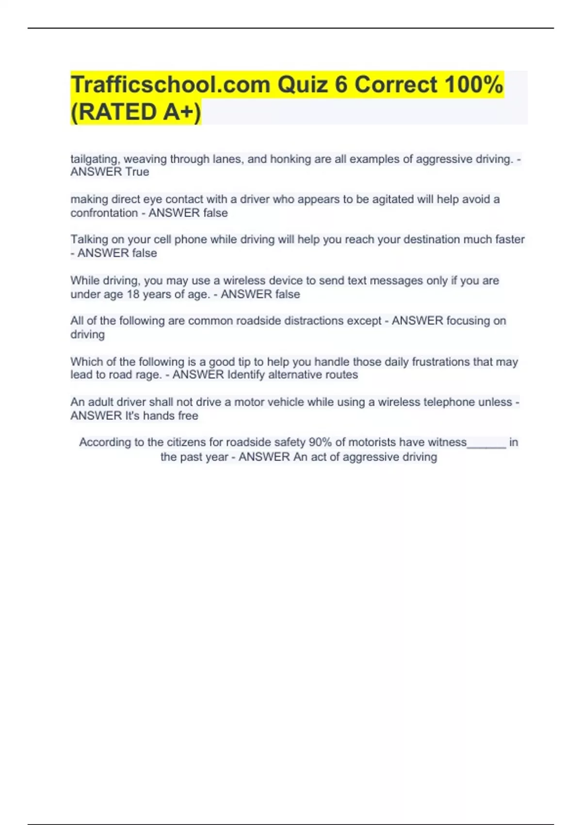 Trafficschool.com Quiz 6 Correct 100%(RATED A+)