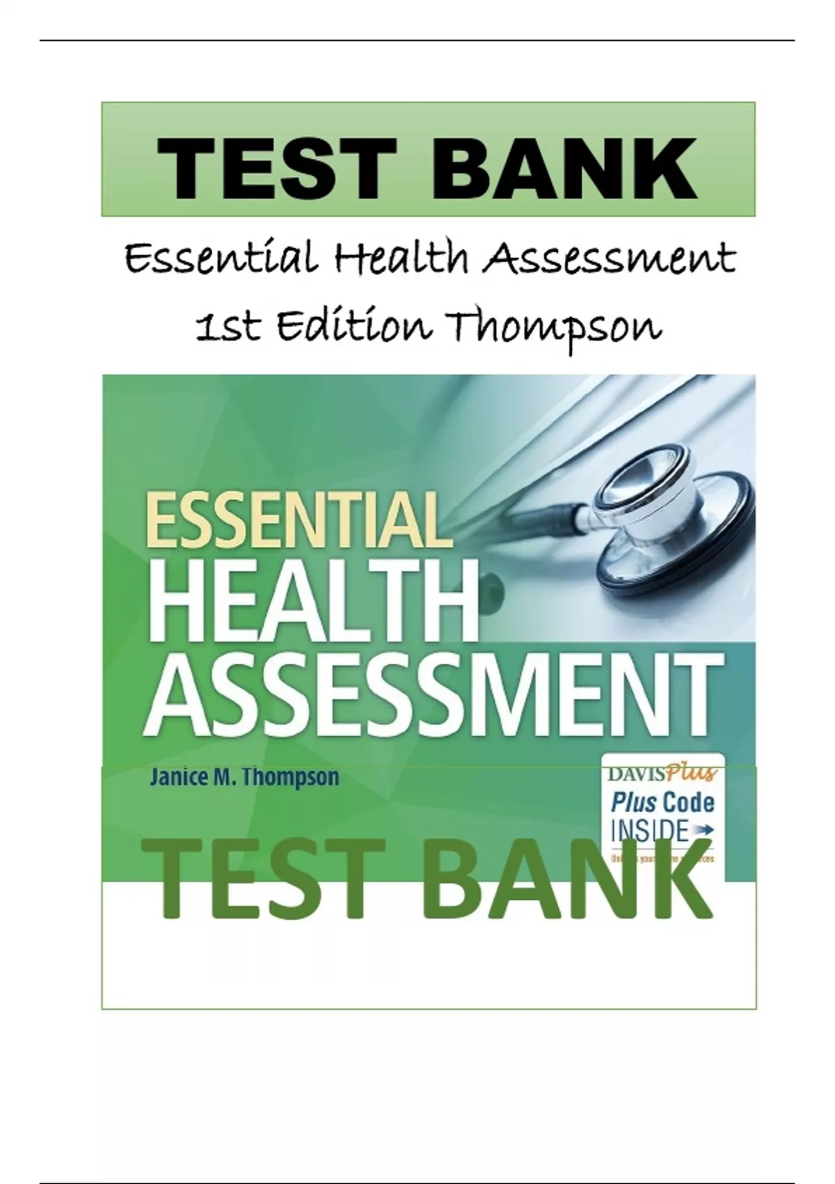 Test Bank for Essential Health Assessment 1st Edition Thompson Test Bank for Essential Health Assessment, 1st Edition, Janice Thompson, ISBN-13: 9780803627888 Table of Contents 1. Understanding Health Assessment 2. Interviewing the Patient for the Health
