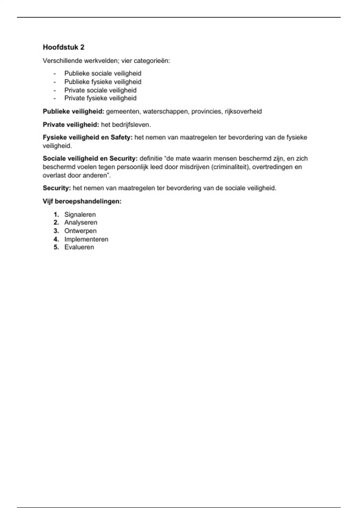 Security: het nemen van maatregelen ter bevordering van de sociale veiligheid.