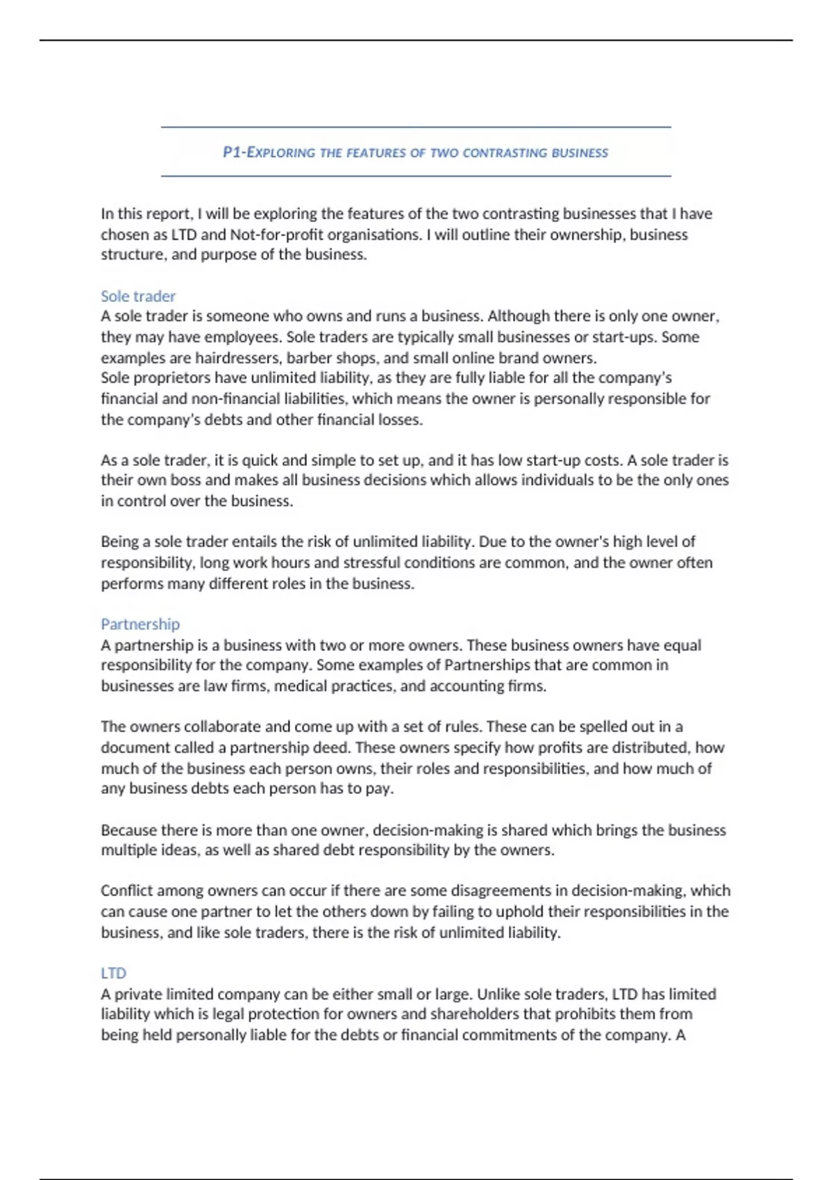 P1-EXPLORING THE FEATURES OF TWO CONTRASTING BUSINESS