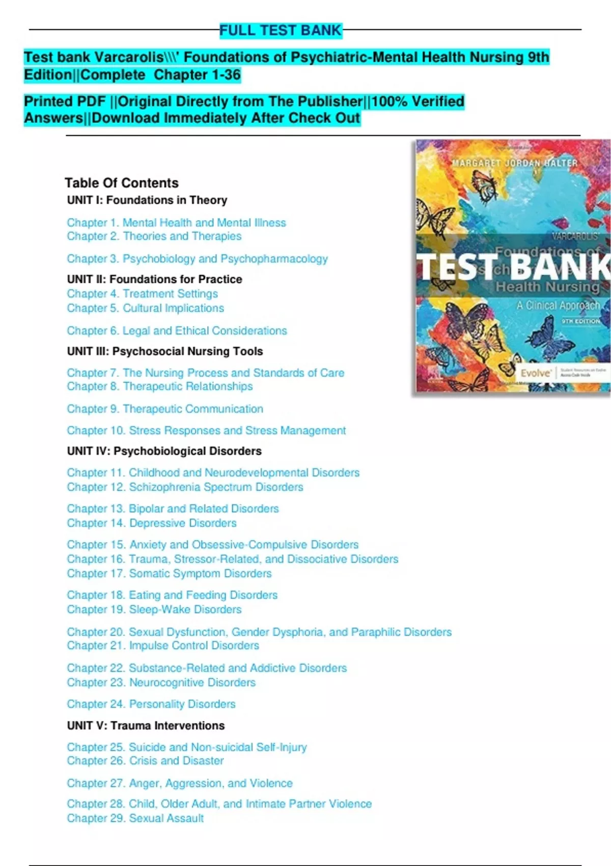 Test bank For Varcarolis' Foundations of Psychiatric-Mental Health Nursing 9th Edition
