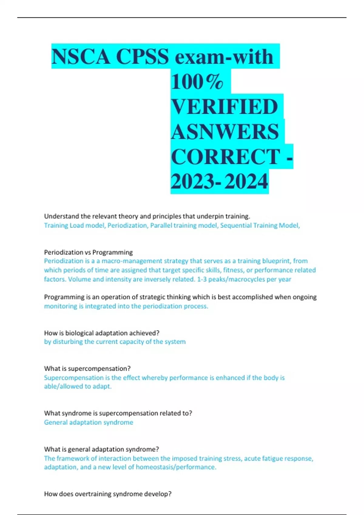 NSCA CPSS exam-with 100% VERIFIED ASNWERS CORRECT -