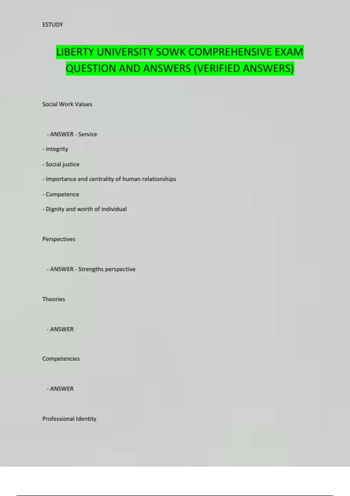 LIBERTY UNIVERSITY SOWK COMPREHENSIVE EXAM QUESTION AND ANSWERS (VERIFIED ANSWERS)
