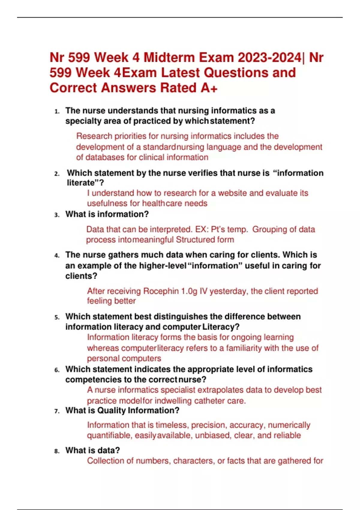 Nr 599 Week 4 Midterm Exam | Nr 599 Week 4Exam Latest Questions and Correct Answers Rated A+