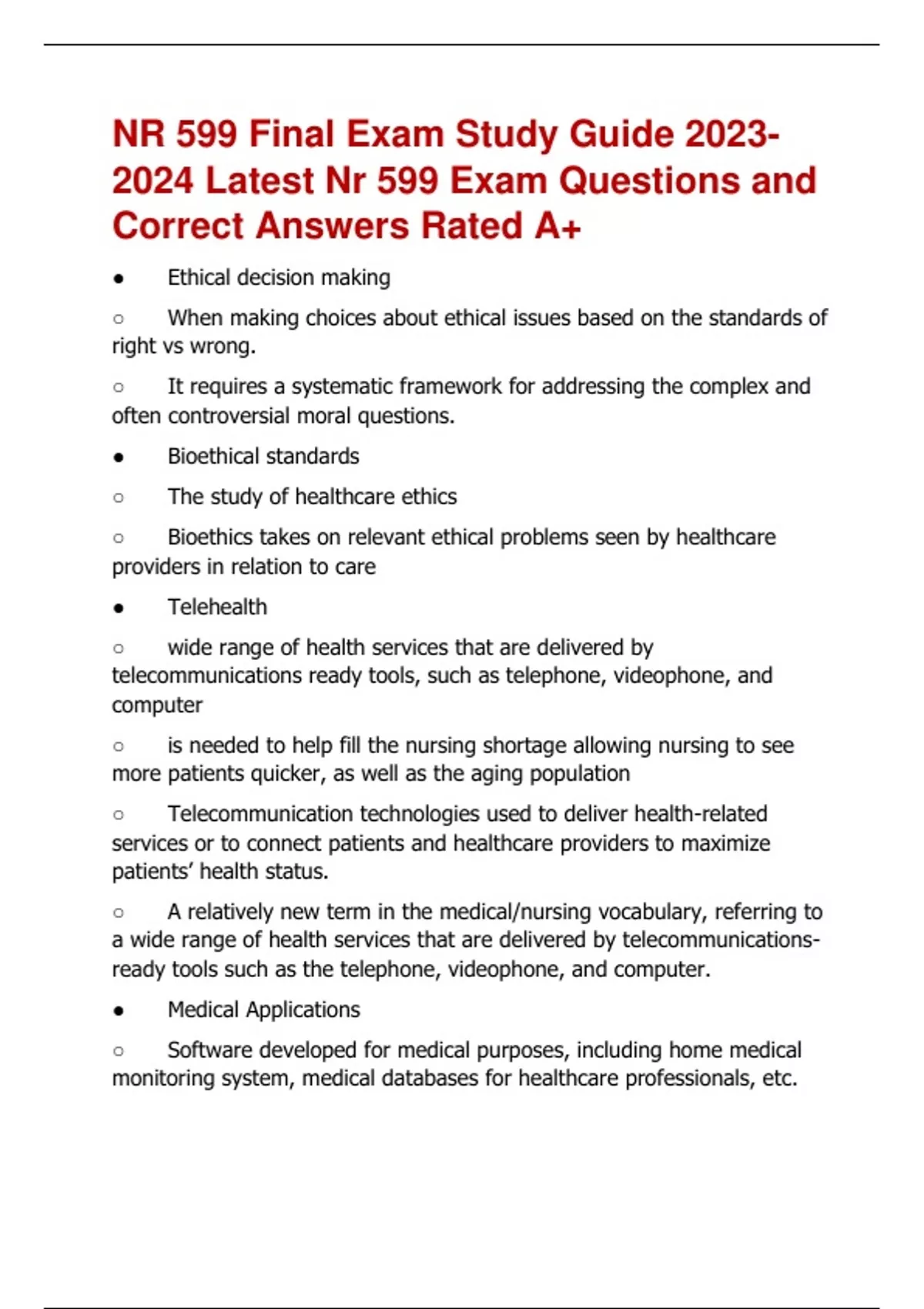 NR 599 Final Exam Study Guide Latest Nr 599 Exam Questions and Correct Answers Rated A+