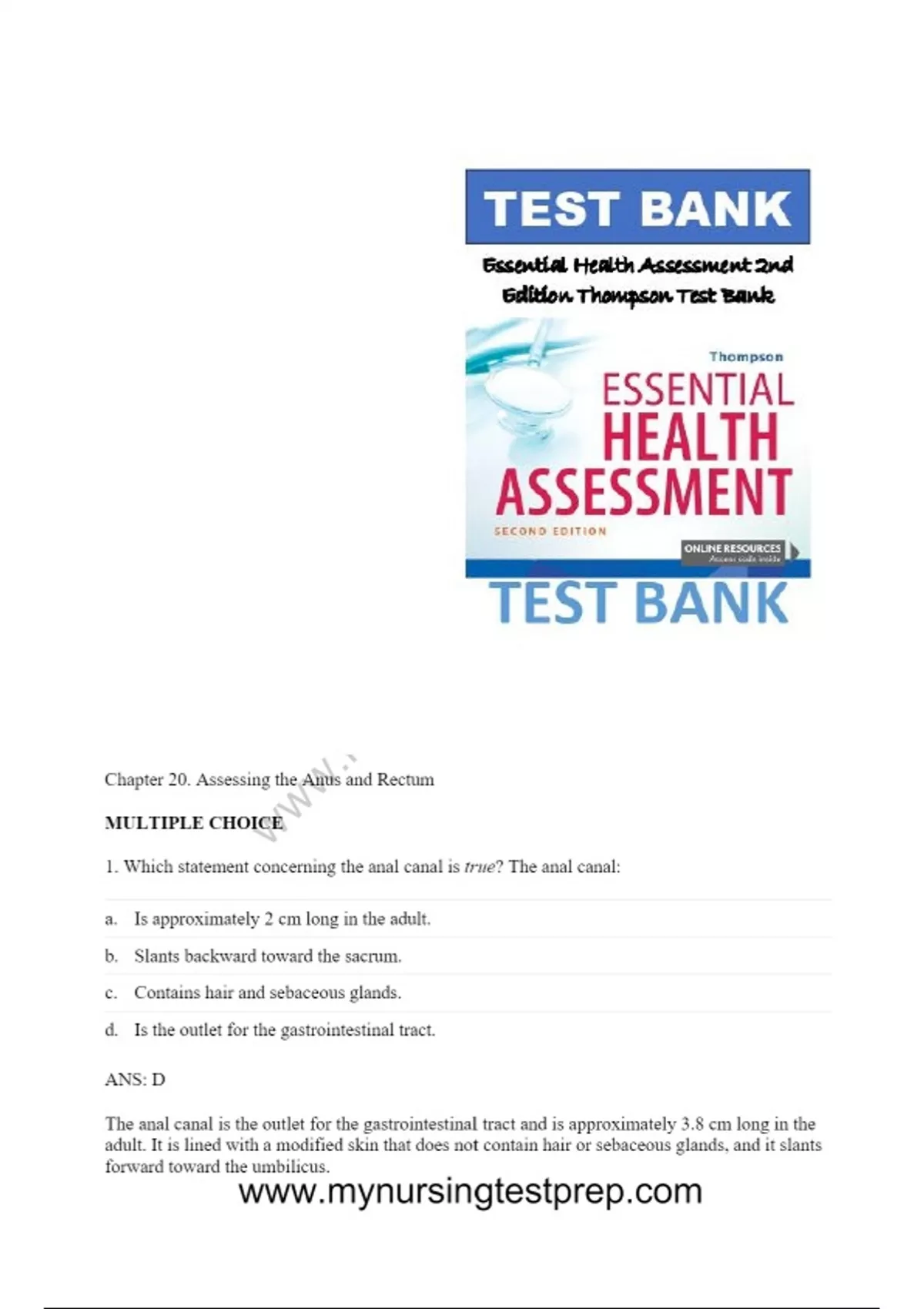 Essential Health Assessment 2nd Edition Thompson Test Bank Chapter 20. Assessing the Anus and Rectum
