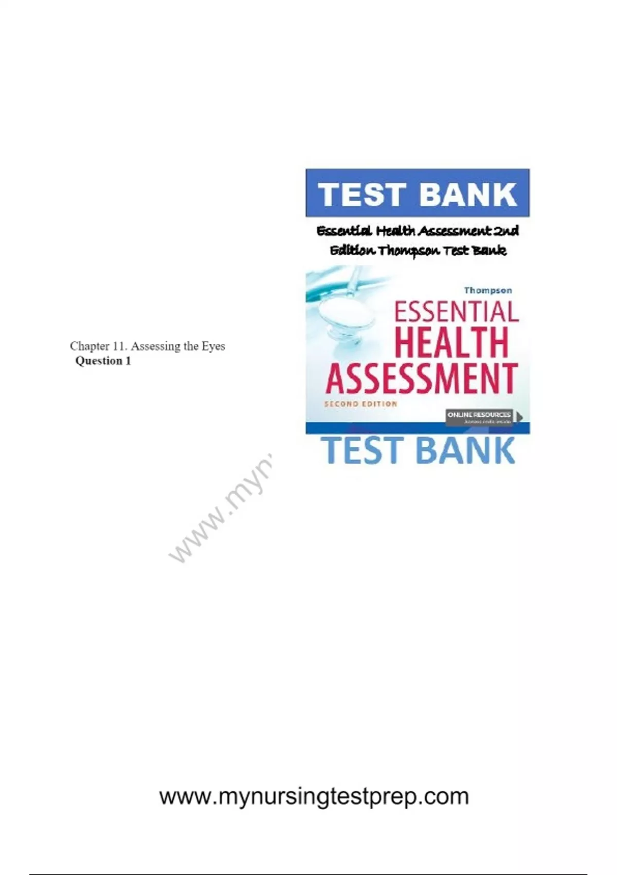 Essential Health Assessment 2nd Edition Thompson Test Bank Chapter 11. Assessing the Eyes